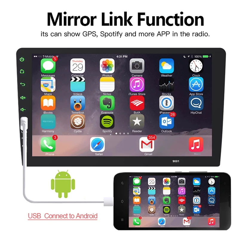 Перед покупкой этого устройства убедитесь, что вы можете купить подходящий комплект для установки!Функции блока:1. Подключение к смартфону, зеркальная связь с двойным контролем2. Полностью емкостный сенсорный экран управления3. Встроенный Bluetooth 4,0, hands-free, телефонная книга, A2DP для парения музыки телефона на радио.4. 9 дюймов 1024*600 супер высокой четкости цифровой экран5. Система Android6. 4 ядра 1,3 ГГц7. Встроенный 1G DDR3, 16G флэш-память8. Встроенный WIFI.9. Вход камеры заднего вида10. Встроенный 4*45 Вт усилитель11. Встроенный AM/FM с 30 предустановленными станциями12. Два задних usb-входа13. Поддержка управления рулевым колесом14. 2CH задний видео вход15. 2CH задний RCA вход16. 2CH задний аудио выход