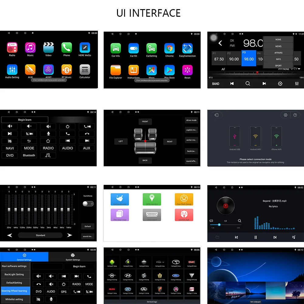 · Высокоскоростной Wi-Fi Интернет: система поддерживает серфинг Интернет через WiFi. Поставляется с WiFi модулем. Вы можете выполнить поиск Google в дороге с помощью коробки быстрого поиска, играть в онлайн-игры, смотреть видео, загружать онлайн-данные и проверять электронные письма, Подключаясь к любой точке доступа Wi-Fi в диапазоне Интернет.· Загрузка приложения: он заменяет ваше заводское радио системой на базе android отличной утилиты и расширяемости. Вы можете скачать любые приложения на рынке android для доступа к играм, Skype, MSN, YouTube, twitter, электронной книге, Gmail и т. Д. Эта система также поддерживает установку или удаление приложений на оперативной памяти или SD.· 3D навигация: автомобильный стерео оснащен во всем мире функцией навигации в реальном времени высокой точности. Благодаря текущему местоположению, скорости, пробегу, знаковому дисплею здания, 3D виду улицы, поиску места назначения и поворотным голосовым указаниям, он станет вашим идеальным спутником. С функцией dual zone, музыка с радио/AV/DVD/TV и т. Д. Может воспроизводиться за сценой в режиме GPS, и она автоматически переключается на голос GPS.· Радио тюнер: Встроенный с сильным цифровым RDS/FM/AM радио тюнер, этот автомобиль A/V система функции поиска радиоканалов автоматически, вручную и хранение их в процессе.· Bluetooth: модуль Bluetooth для звонков без рук и потоковой передачи музыки. С мелодиями звонка и голосом, выходящими из автомобильных динамиков, вы можете набрать, ответить, отклонить и отключить звонки, не снимая руки с руля. Функция телефонной книги позволяет осуществлять поиск контактов непосредственно на большом экране головного устройства. Также желательно передавать любимые мелодии со смартфона по беспроводной сети. Внутренний микрофон входит в комплект для разговора без искажений.· Управление файлами: с файловым браузером вы можете открывать файлы с соответствующими приложениями, искать файлы и управлять ими.· Видео HD 1080P: воспроизведение видео HD 1080P поддерживается этим автомобильным dvd-плеером.· Управление рулем: управление рулем вашего оригинального автомобиля будет работать после установки.· Подключение USB/SD на 32 Гб: с разъемами USB и SD емкостью 32 ГБ, это устройство позволяет воспроизводить аудио и видео, просматривать фото, читать электронные книги и т. Д. С SD или USB. MP3,WMA,AAC,RM,LFAC audio formarts,MPEG-1/2/4,H264,H263,VC1,RV,RMVB,DivX,Sorenson SparK,Spark,VP8, поддерживаются AVS Stream video и JPG/BMP/JEPG/GIF/PNG picture.· Зарядка IPod/IPhone: Этот Мультимедиа поддерживает зарядку вашего iPod/iPhone через usb-кабель.· Языки OSD: поддерживаются 37 видов OSD языков, включая: Китайский традиционный, китайский упрощенный, японский, корейский, арабский, английский (Австралия), английский (Канада), английский (Новая Зеландия), английский (Сингапур), английский (Великобритания), английский (США), африкаанс, индонезийский бахаса, бахаса мелаю, немецкий (немецкий), немецкий (Норвегия), немецкий (Германия), Филиппинский, Fancais(Belgique), Fancais (Канада), Fancais (Франция), Fancais(Suisse), Italiano (Италия), Italiano(Svizzera), Kiswahili, Latviesu, Magyar,Nederland, norsk bokmal,Polski, Portugues(Brasil), Portugues (Португалия), Rumantsch, словенцина, Suomi, svensk, Pyccknn.· Зеркальная ссылка: синхронизирует ваш мобильный телефон через Wi-Fi или USB. Эта технология позволяет получить доступ к приложениям вашего смартфона на устройстве для воспроизведения музыки и видео и т. д. Android Поддерживает двустороннюю/iOS поддержку в одном направлении.