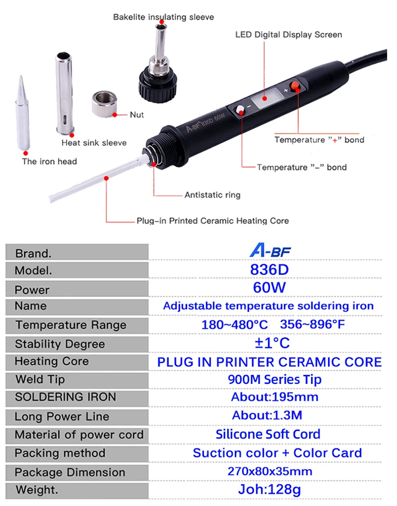 Набор паяльника A-BF 836D 60 Вт, цифровой ЖК-переключатель, сварочн...