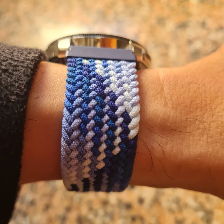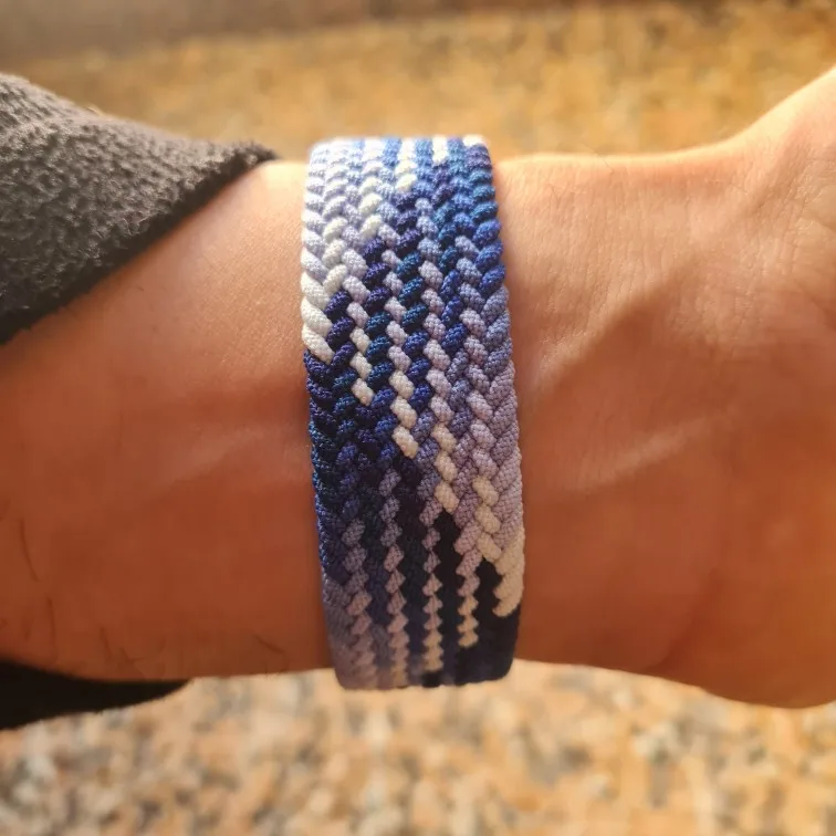 Очень хороший браслет. Если вы носите его с размером, он идеально подходит без движения. Я попросил XXS в зеленом, но он очень плотный, я закажу XS снова. Синий-это S, и он идеально сидит.