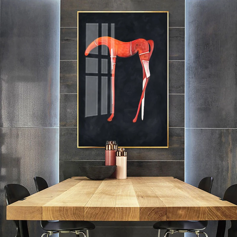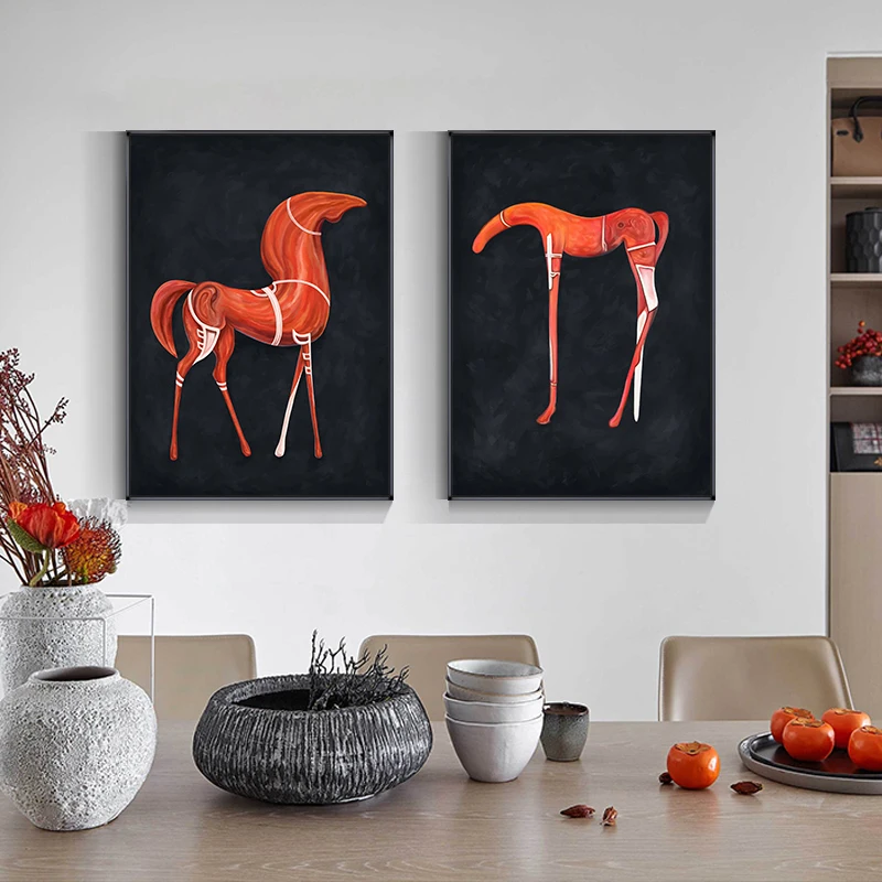 Современный абстрактный постер с животными, черная, красная лошадь, олень, холст, живопись, Настенная картина, скандинавский Декор для гостиной, дома