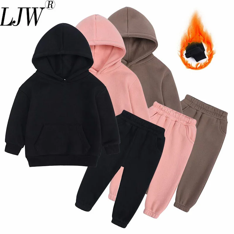 2021 Новый однотонный повседневный комплект с капюшоном, детский теплый спортивный костюм из двух предметов для мальчиков и девочек 2-12 лет, оптовая продажа