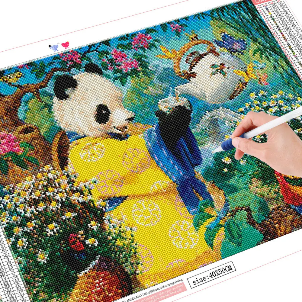 Алмазная 5d картина HUACAN, полноразмернаякруглая мозаика с изображением панды, для творчества, домашний декор