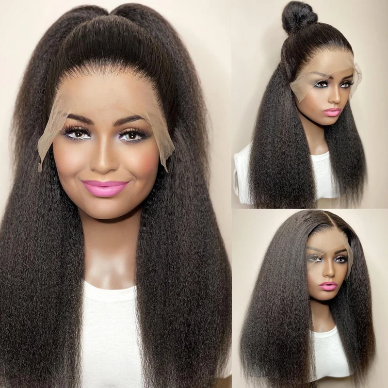 Парик Yaki без клея, прямые кудрявые синтетические на сетке спереди...