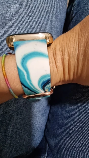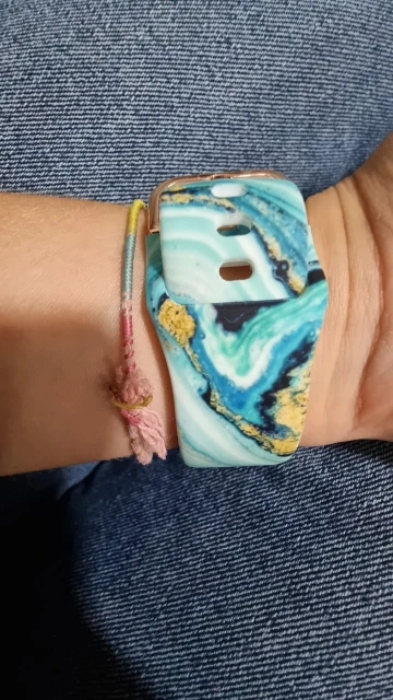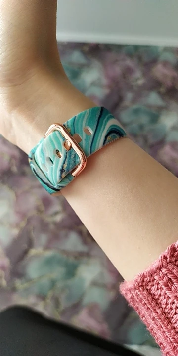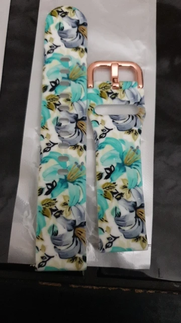 Ремешки мягкие, приятные, но есть нюанс с рисунком. Рисунок нанесен на наружнюю сторону ремешка, с внутренней стороны он просто белый. И с торца, где ремешок крепится к часам, видно белую полосу когда ремешок загибается вокруг руки. На фото это видно. И эта белая полоса, к сожалению, бросается в глаза на ремешках с темным рисунком. Попробую закрасить перманентным маркером )) А так доставка довольно быстрая, ремешки пришли в Москву за 2 недели.