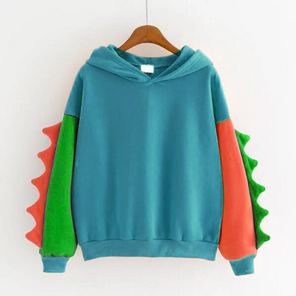Худи с динозавром, женская модная толстовка с капюшоном, топы, повс...