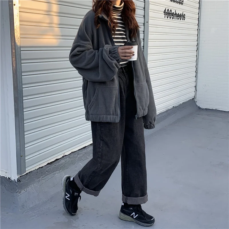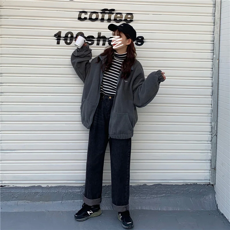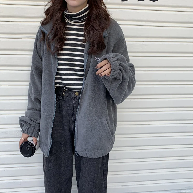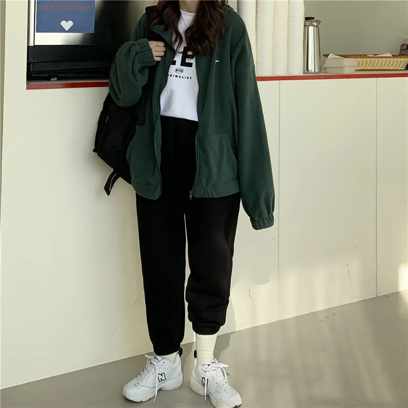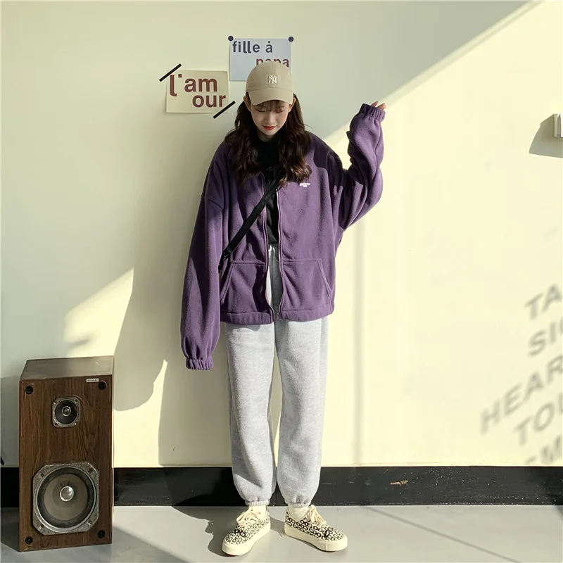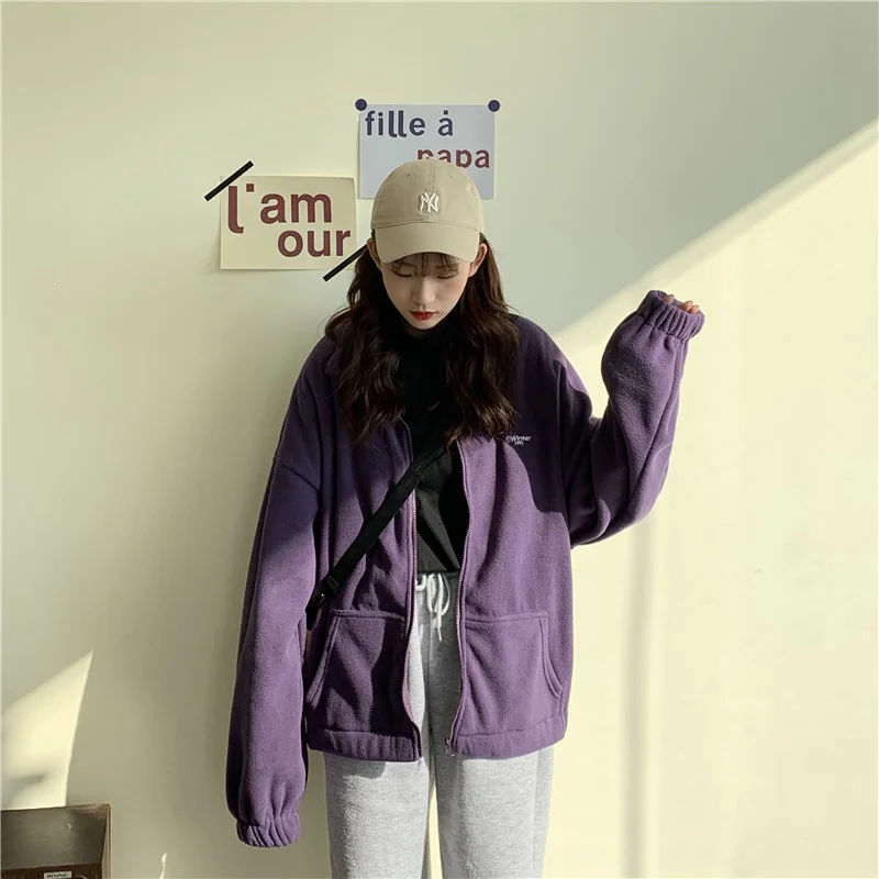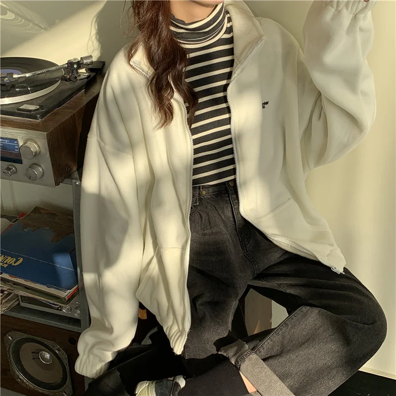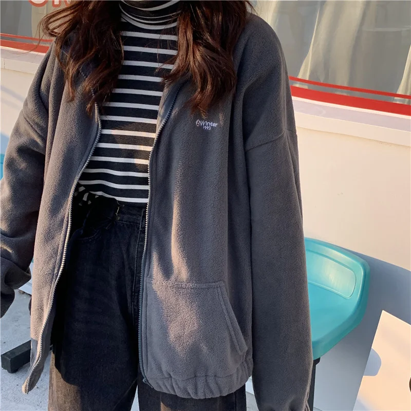 Осенняя толстовка на молнии, женский свободный бархатный свитшот с ...