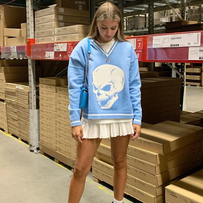 Повседневный свитер с принтом черепа в стиле Харадзюку, свободные о...
