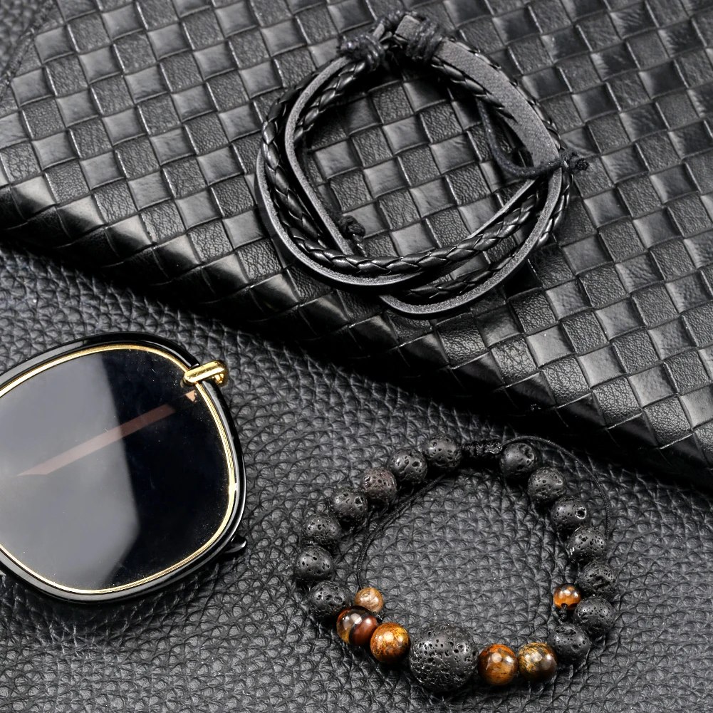 Мужские кварцевые часы, браслет из вулканического камня, в подарочной коробке