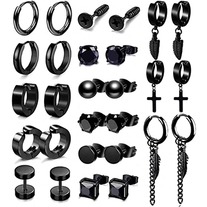 Набор из 10 пар серег-колец из нержавеющей стали, черная цепочка с ...