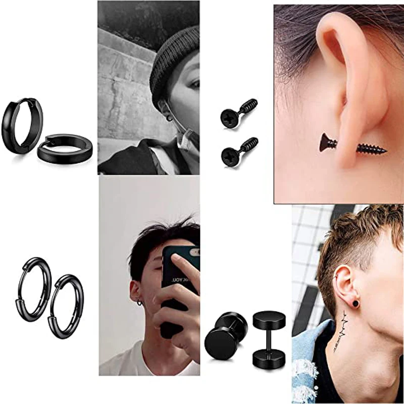 Набор серег-колец из нержавеющей стали, комплект из 10 пар черных к...