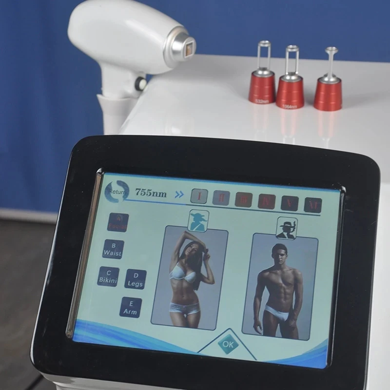 2.808nm + 755nm + 1064nm три лазерных длины волны в сочетании для всех типов кожи лечение 755nm для удаления волос белой кожи 1064nm для удаления черных или темных волос 808nm для другого типа удаление волос цвета кожи