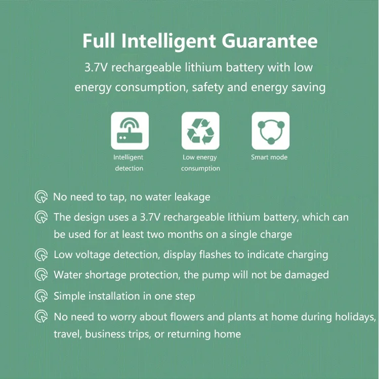 В конструкции используется перезаряжаемая литиевая батарея 3,7 в, что обеспечивает безопасность и низкое энергопотребление. Используется для как минимум два месяца на одной зарядке.