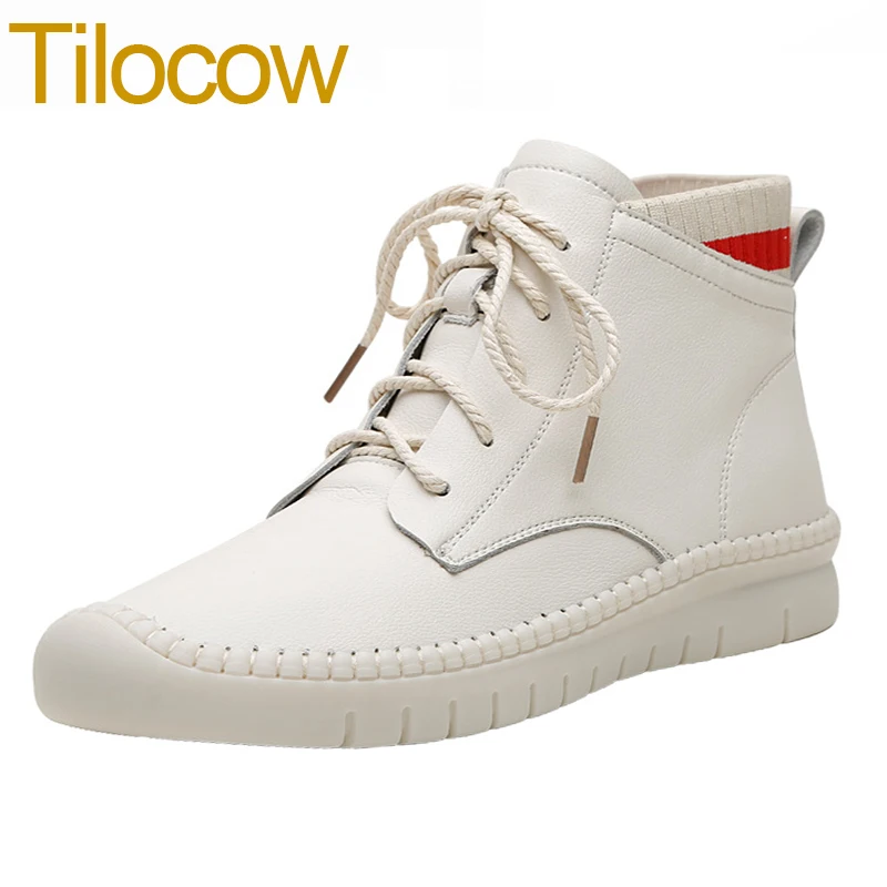 Женские зимние ботильоны Tilocow из натуральной кожи, повседневная лаконичная женская обувь, женские снегоступы с мягкой подошвой, обувь, Новинка
