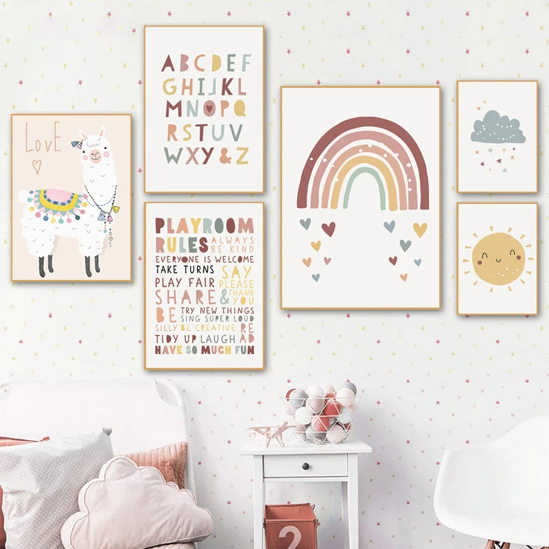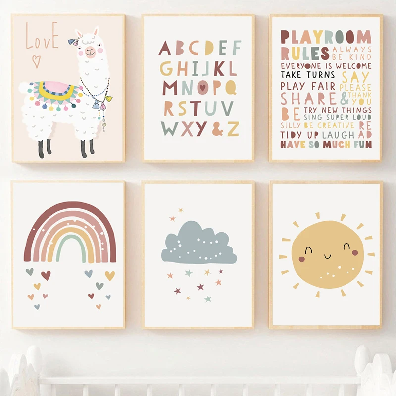 Альпака настенные художественные плакаты солнце Радуга Печать на холсте Алфавит художественная живопись принт для детской скандинавские настенные картины украшение для детской комнаты