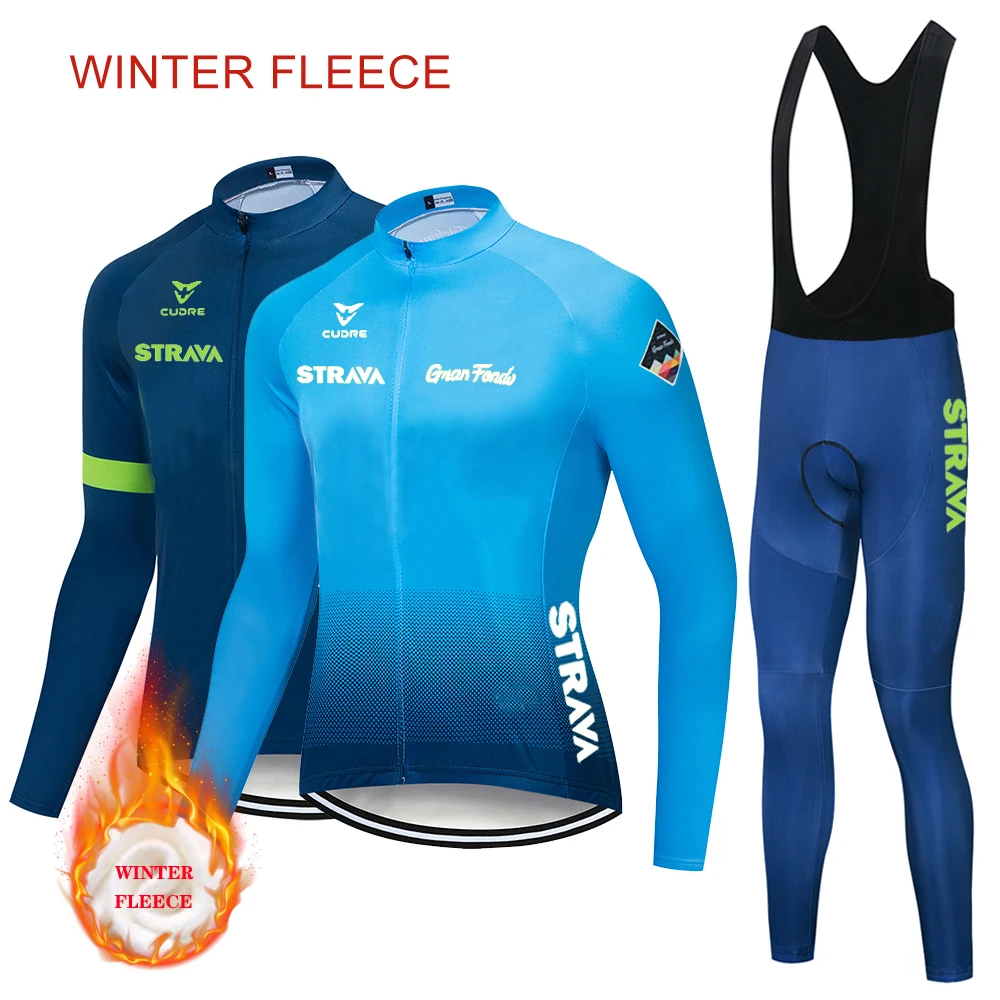 STRAVA новая команда Зимняя Теплая Флисовая одежда для велоспорта мужской костюм из Джерси с длинным рукавом для улицы езды на велосипеде MTB Одежда комбинезон брюки комплект