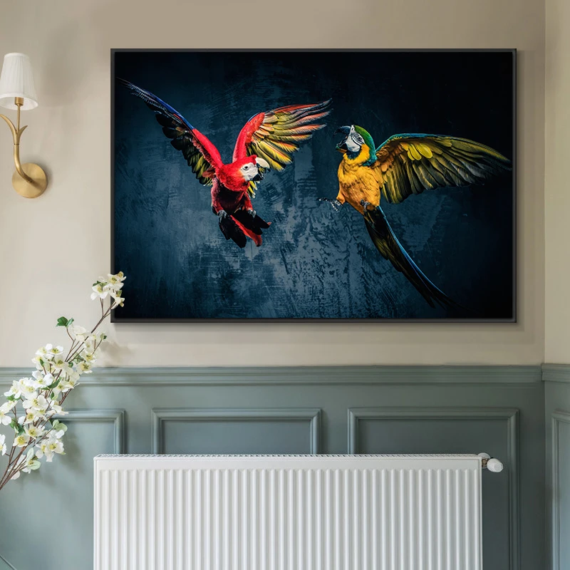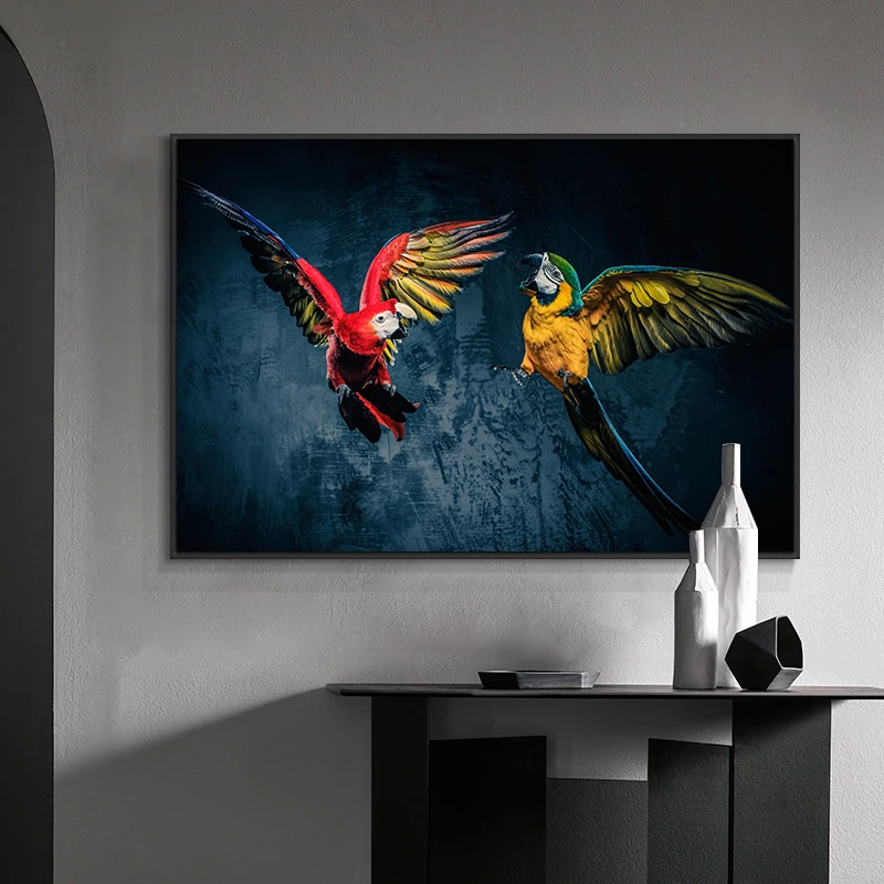 Абстрактная забавная зеленая картина с попугаями и принтом классической птицы, Настенная картина для гостиной, домашний декор