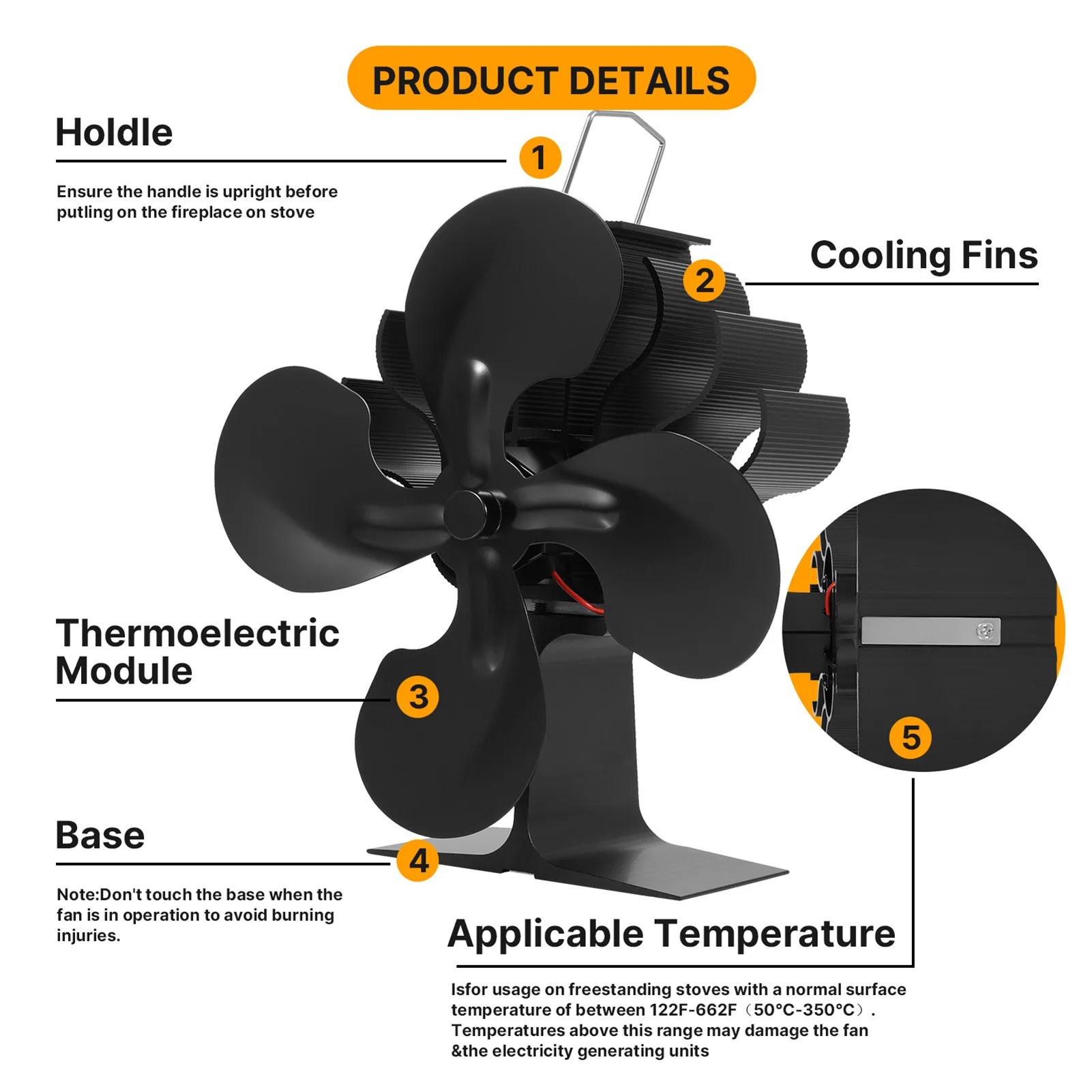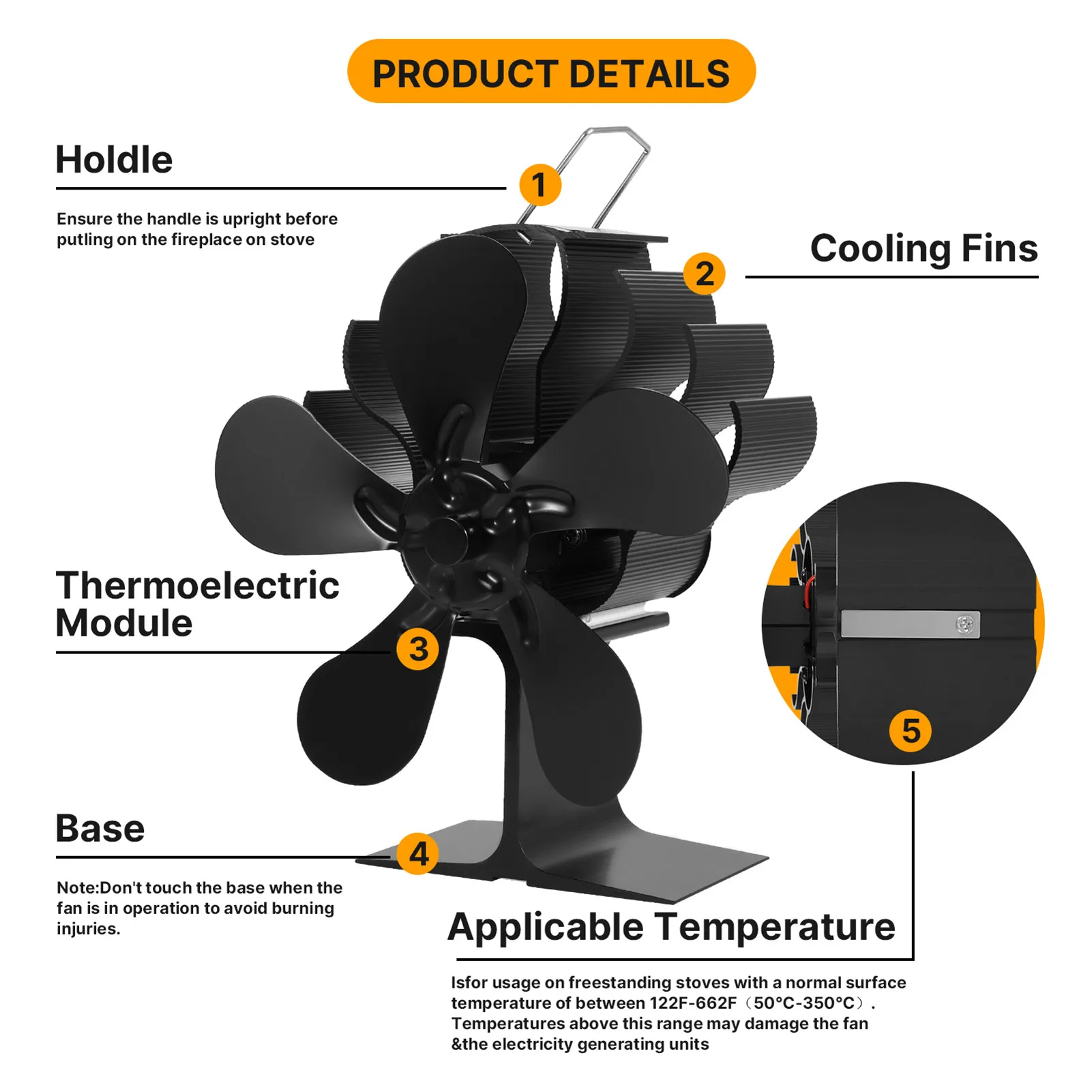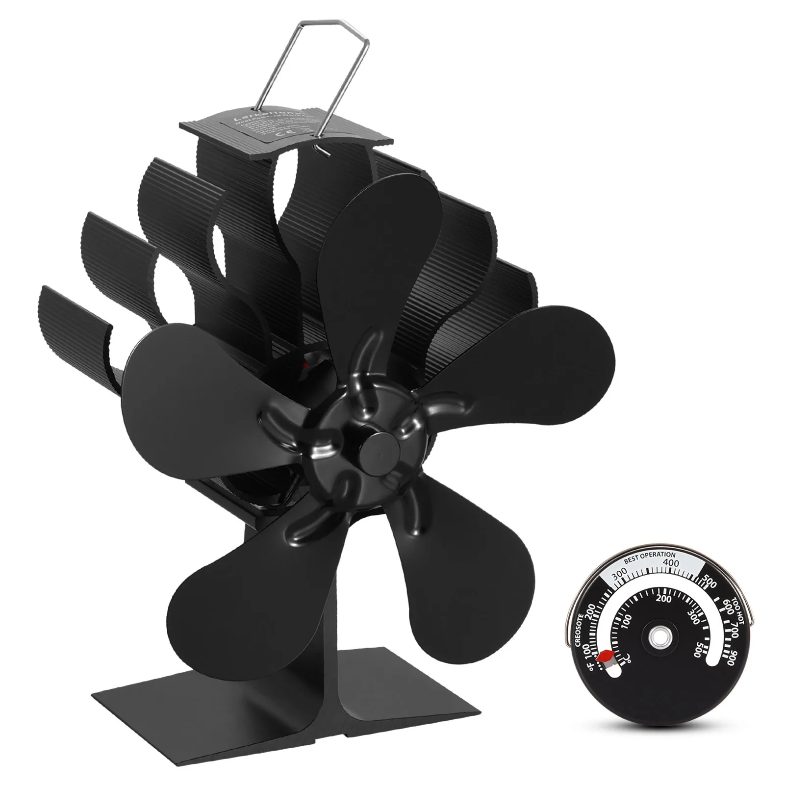 5-лопастной вентилятор для деревянной плиты с подогревом, газонагнетатель воздуха для деревяннойдеревянной горелки, экологически чистый безопасный вентилятор с термометром