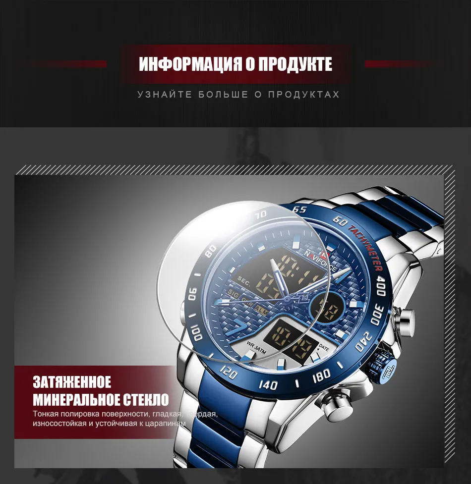 Модель: NAVIFORCE NF9171 NAVIFORCE мужские цифровые часы, светодиодные спортивные военные мужские кварцевые наручные часы, мужские светящиеся водонепроницаемые часы, часы Relogio Masculino