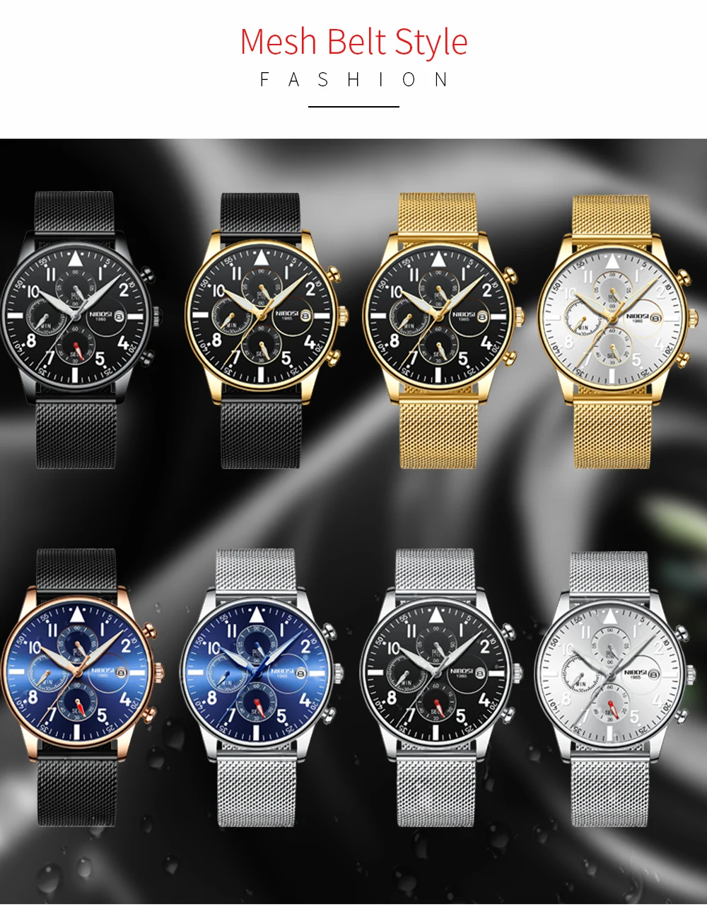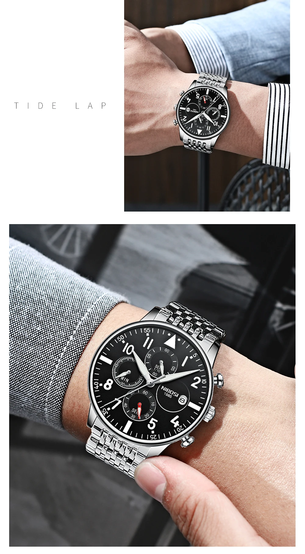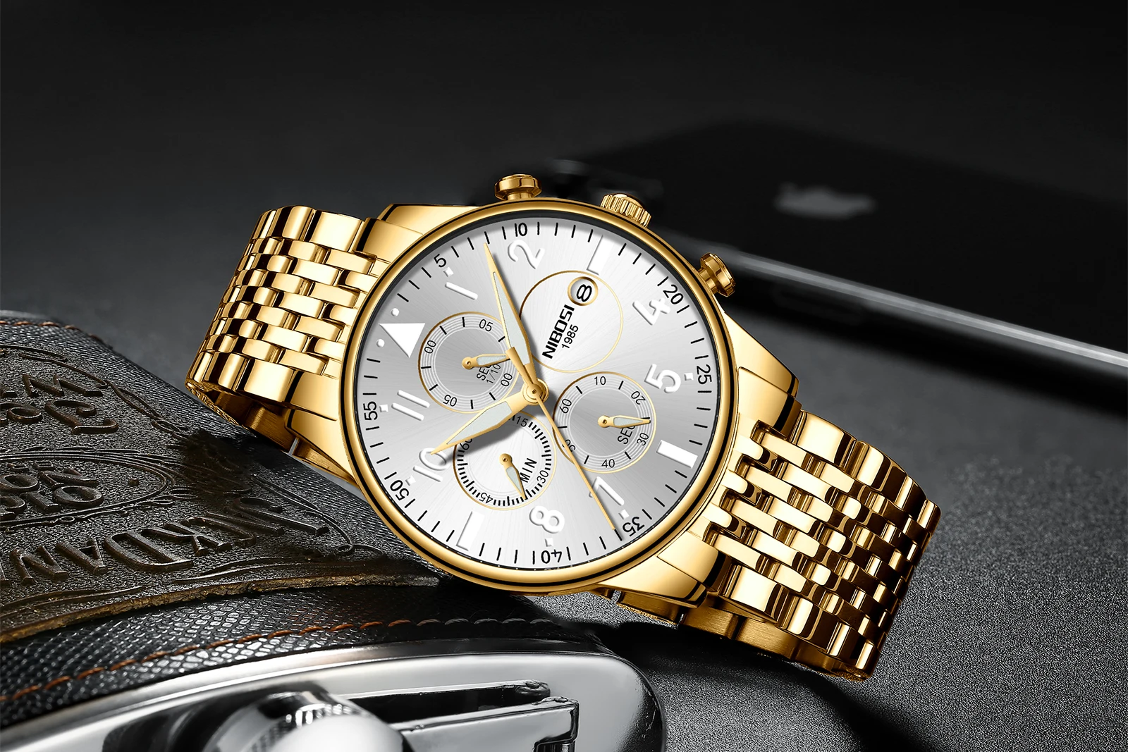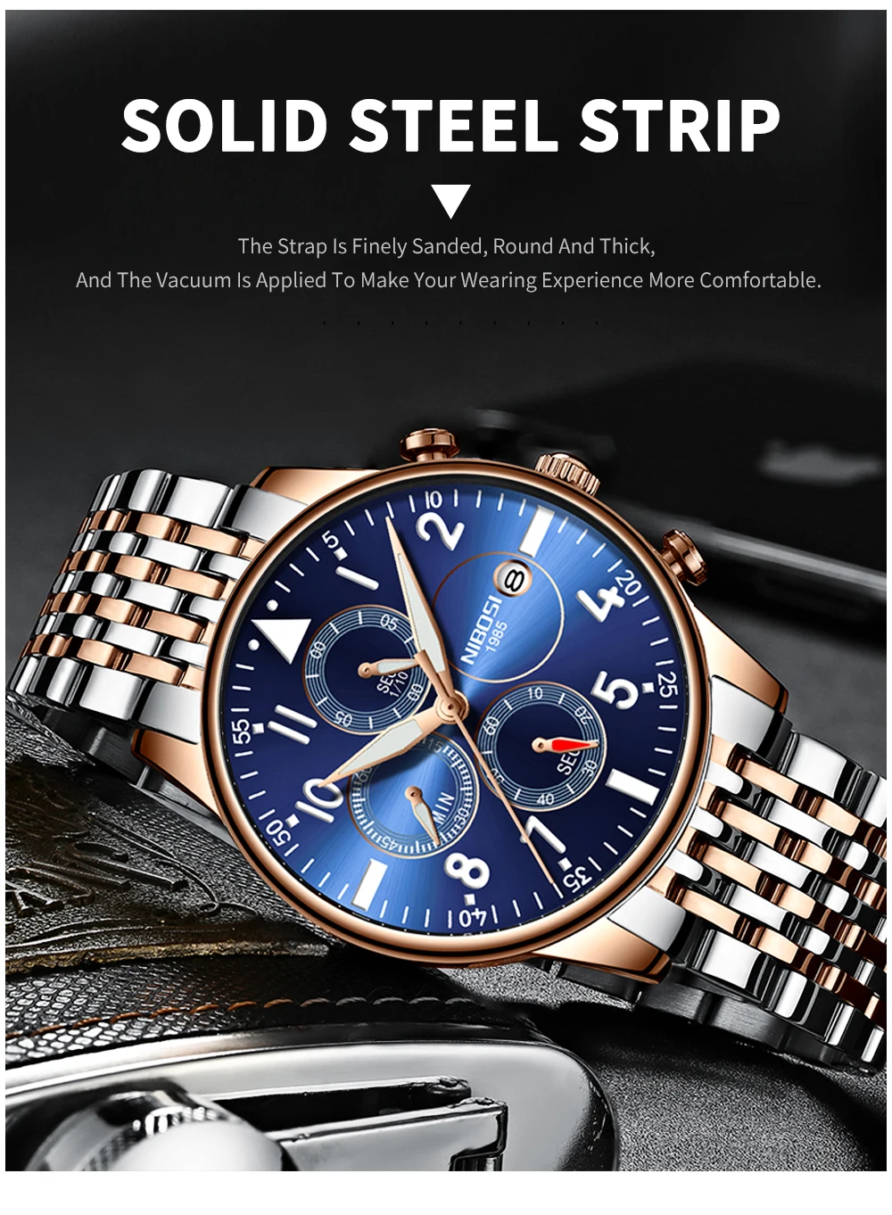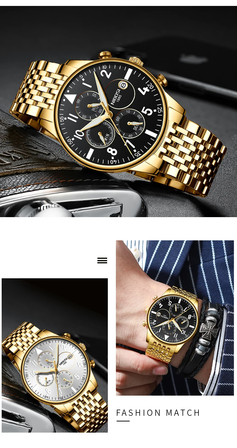 Мужские спортивные часы NIBOSI 2021, роскошные золотистые кварцевые Стальные часы, водонепроницаемые военные цифровые наручные часы, мужские часы