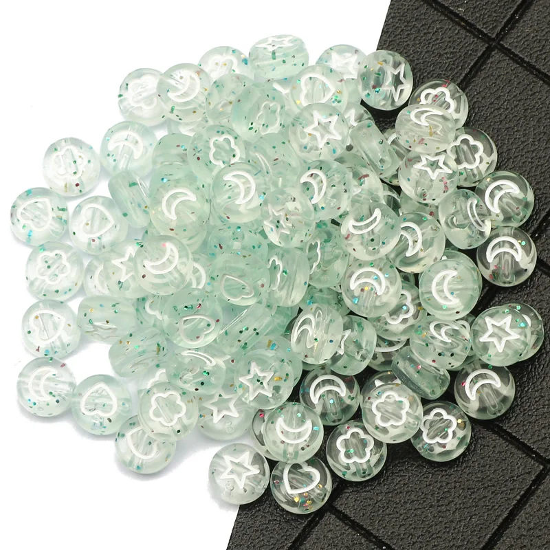 Нефритовое звездное небо, Смешанная луна, звезда, цветок, сердце, круглые акриловые бусины, бусины-разделители, для самостоятельного изготовления ювелирных изделий браслет, ожерелье 7 мм