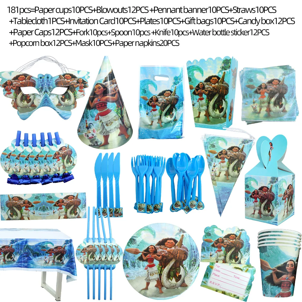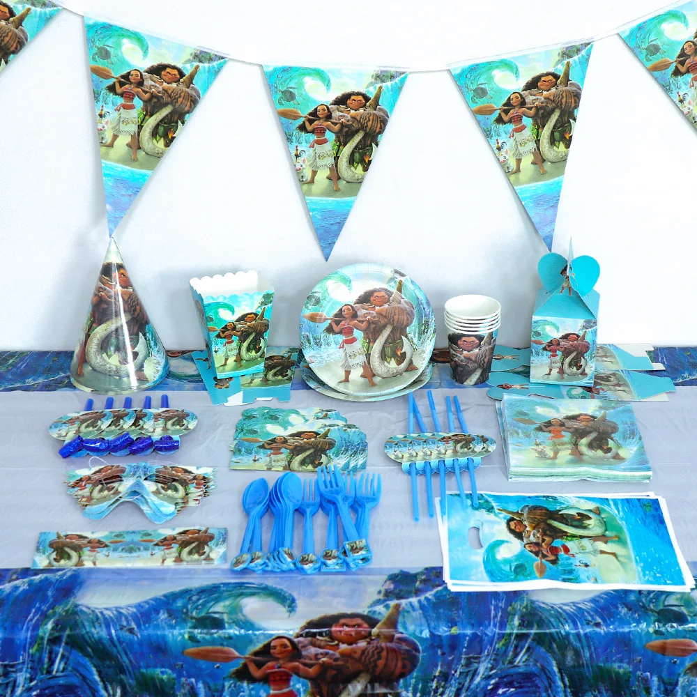 Диснеевские принцессы Моана вечерние НКИ детей на день рождения одноразовая посуда поставки детская скатерть для будущей мамы чашка тарелка