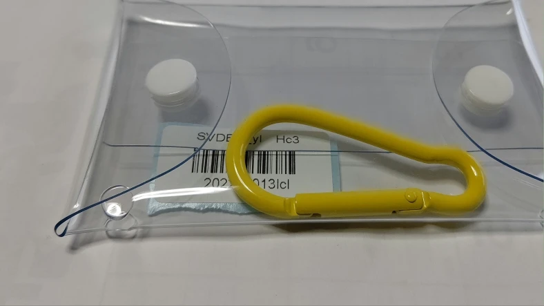 Вид как в описании. Металлический крючок полностью изготовлен из металла, включая застежку без пластиковых деталей.