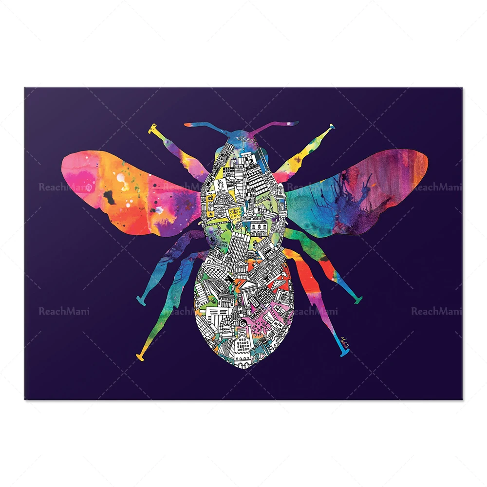 Печать Манчестера рабочих пчелиных-Манчестер пчелиный арт подарок-Манчестер подарок на день Святого Валентина пчелиный настенный художественный плакат для украшения дома