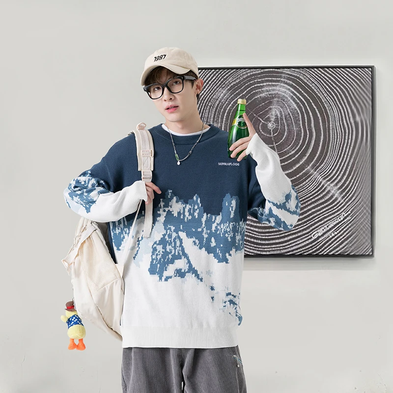Мужские повседневные свитера 2022 года в стиле Харадзюку, СВОБОДНЫЙ Модный Мужской пуловер с круглым вырезом, осенне-зимний свитер с длинным рукавом, вязаные топы