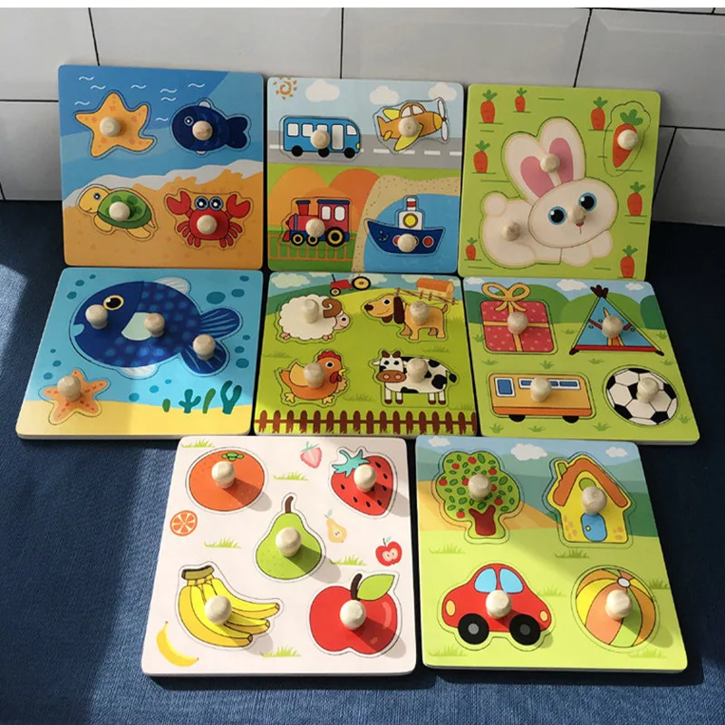 Детский деревянный 3D-пазл с ручками, игрушки для детей, Мультяшные животные, деревянная головоломка для начинающих ходить детей, обучающая игрушка