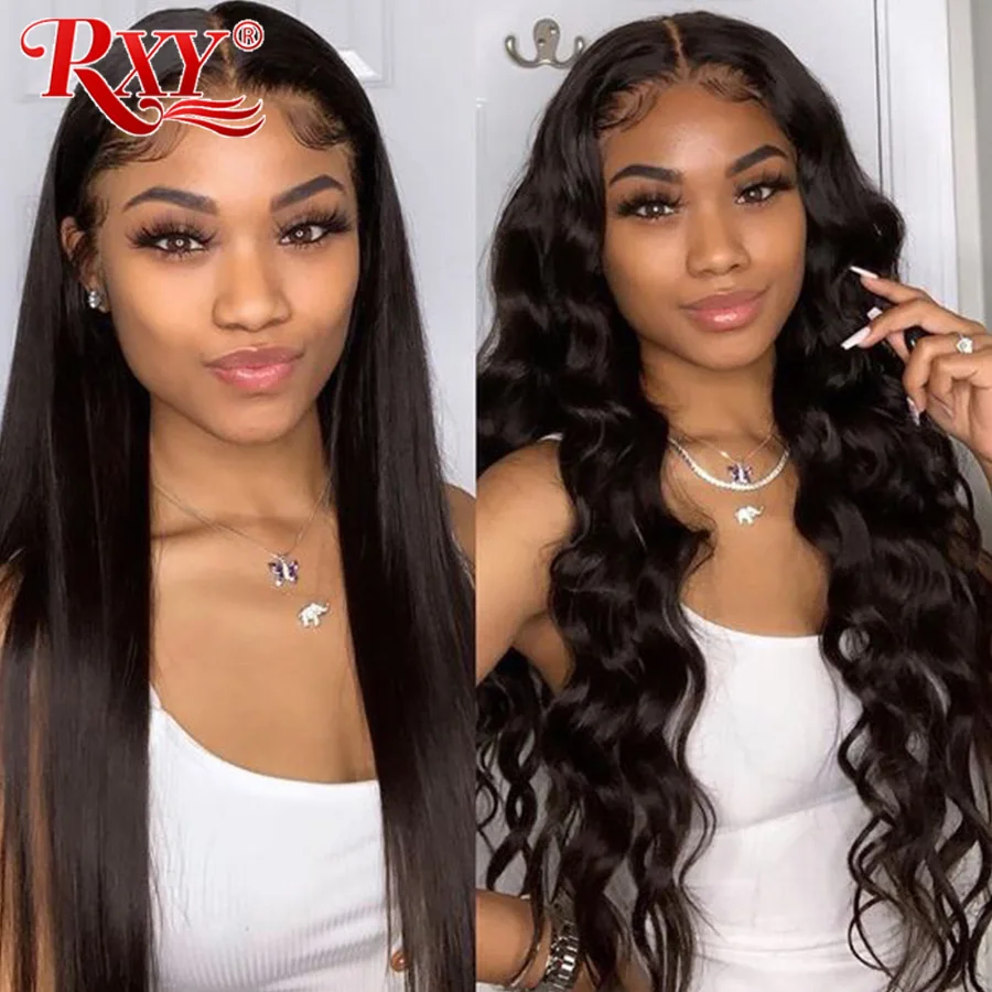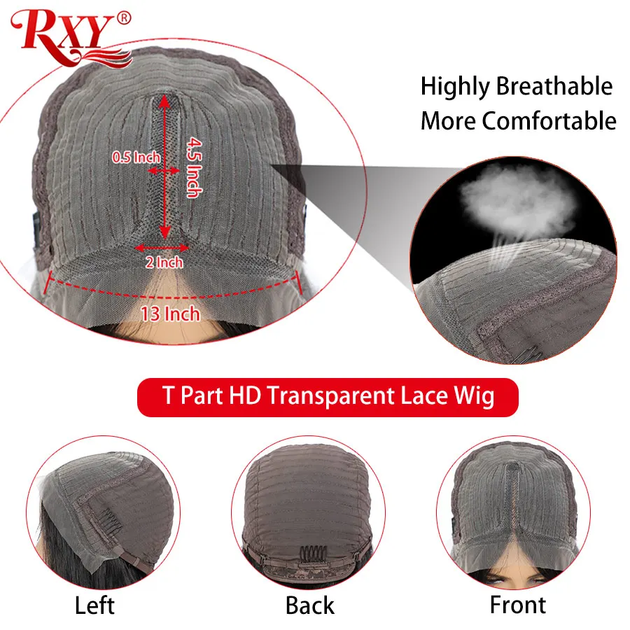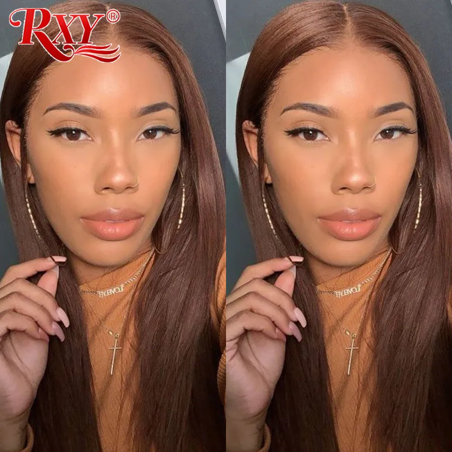 Недорогой парик RXY плотности 250, коричневый парик #4 #2, парик из прямых человеческих волос без клея, парики из прозрачной сетки с T-образной частью для женщин, человеческие волосы