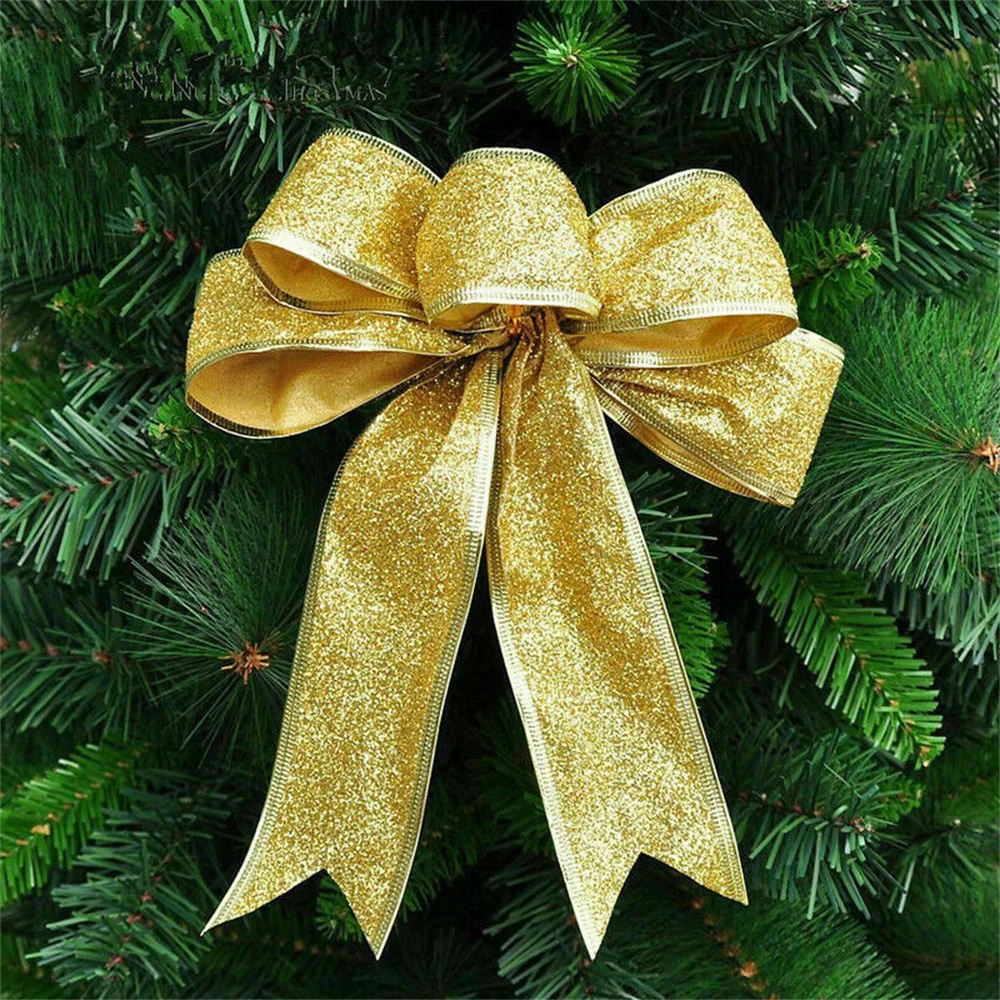 Сверкающий Блестящий Рождественский бант, украшение для большой рож...