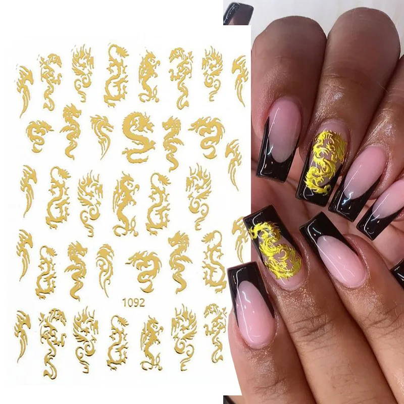 1 шт., самоклеящиеся 3D-Наклейки для ногтей золотистый дракон