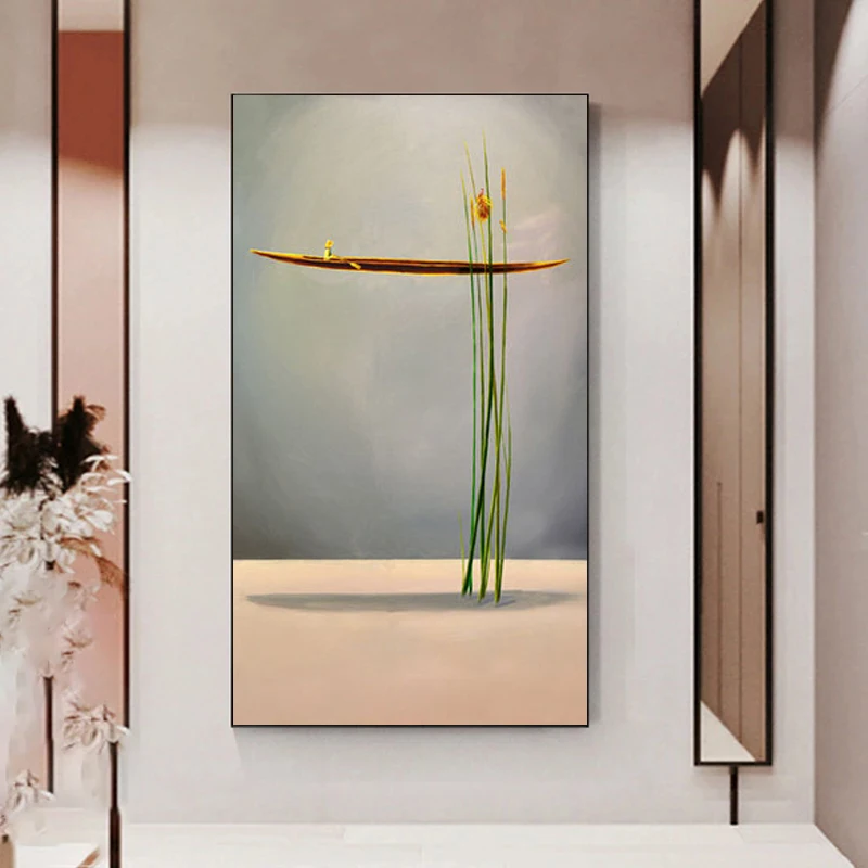 Абстрактная живопись, Новый китайский стиль, золотой лодка, холст, плакат, естественный пейзаж, печать, Настенная картина, украшение для гостиной