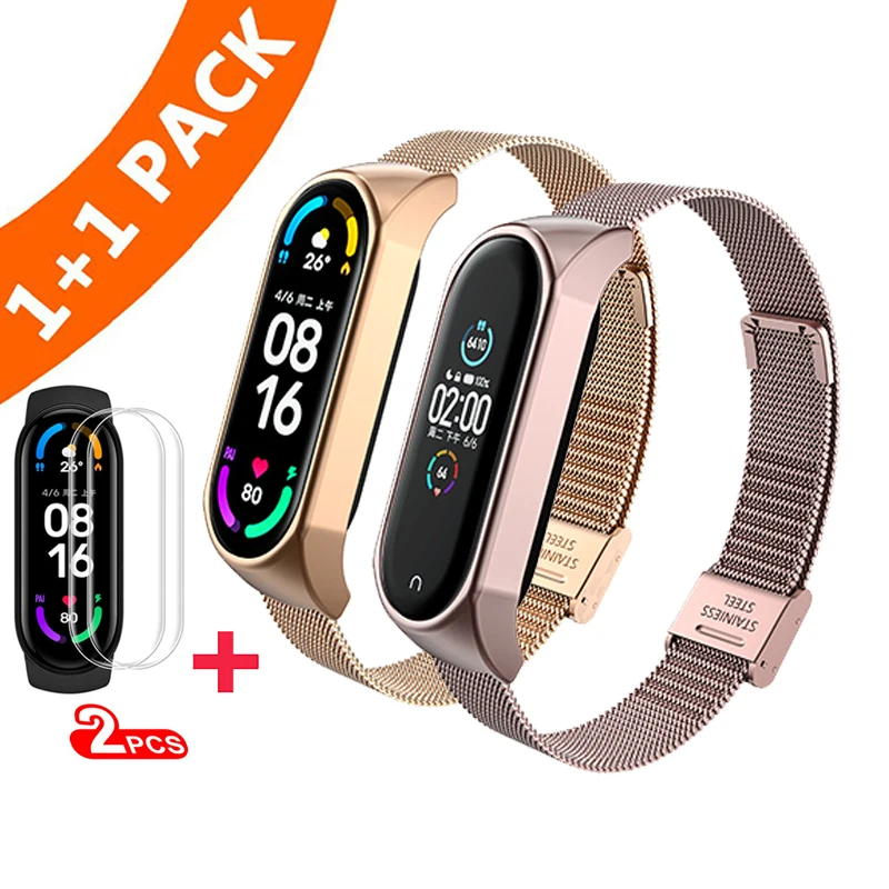 2 шт.упаковка, металлический браслет из нержавеющей стали для Xiaomi Mi Band 6 5 4 3