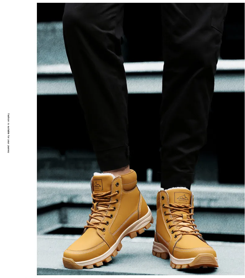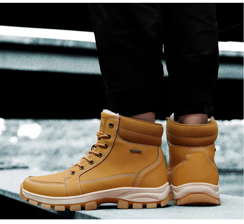 Желтые теплые зимние мужские ботинки; Зимние ботинки из натуральной кожи на меху; Мужская Рабочая обувь; Уличные водонепроницаемые армейские ботильоны для мужчин