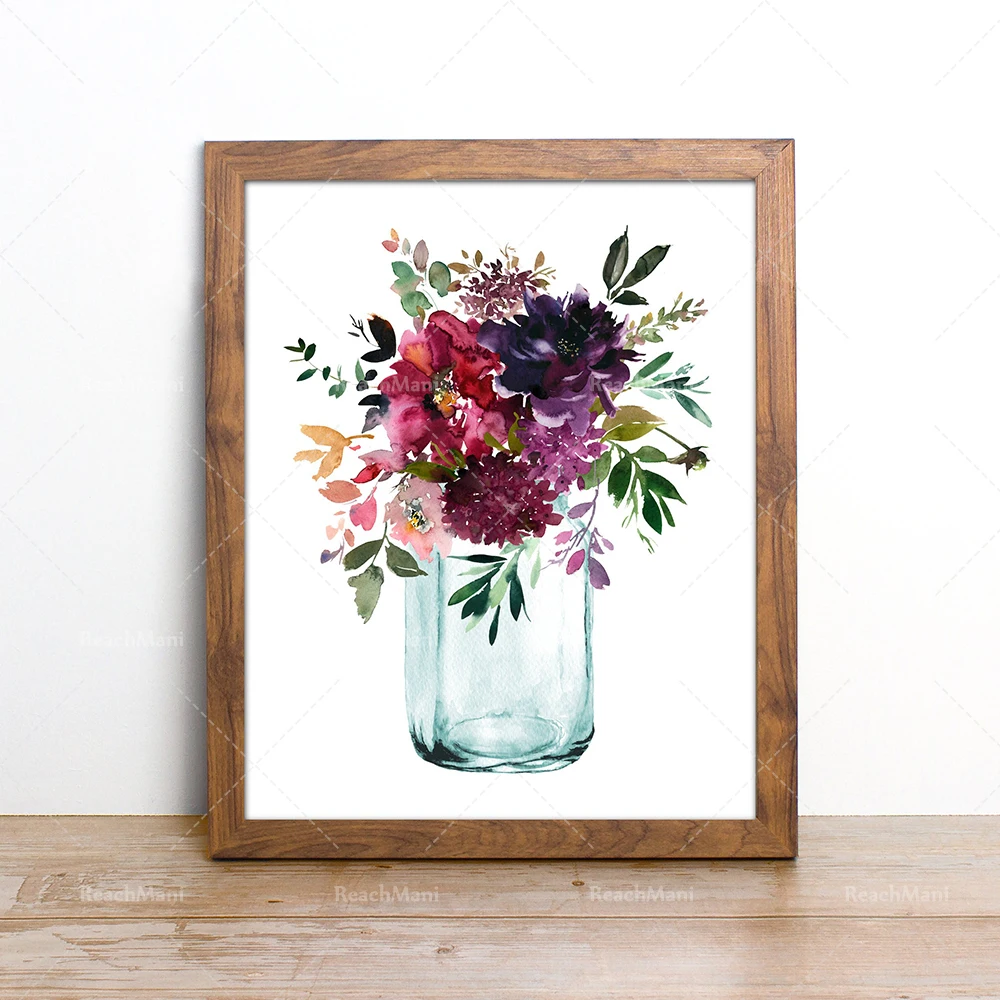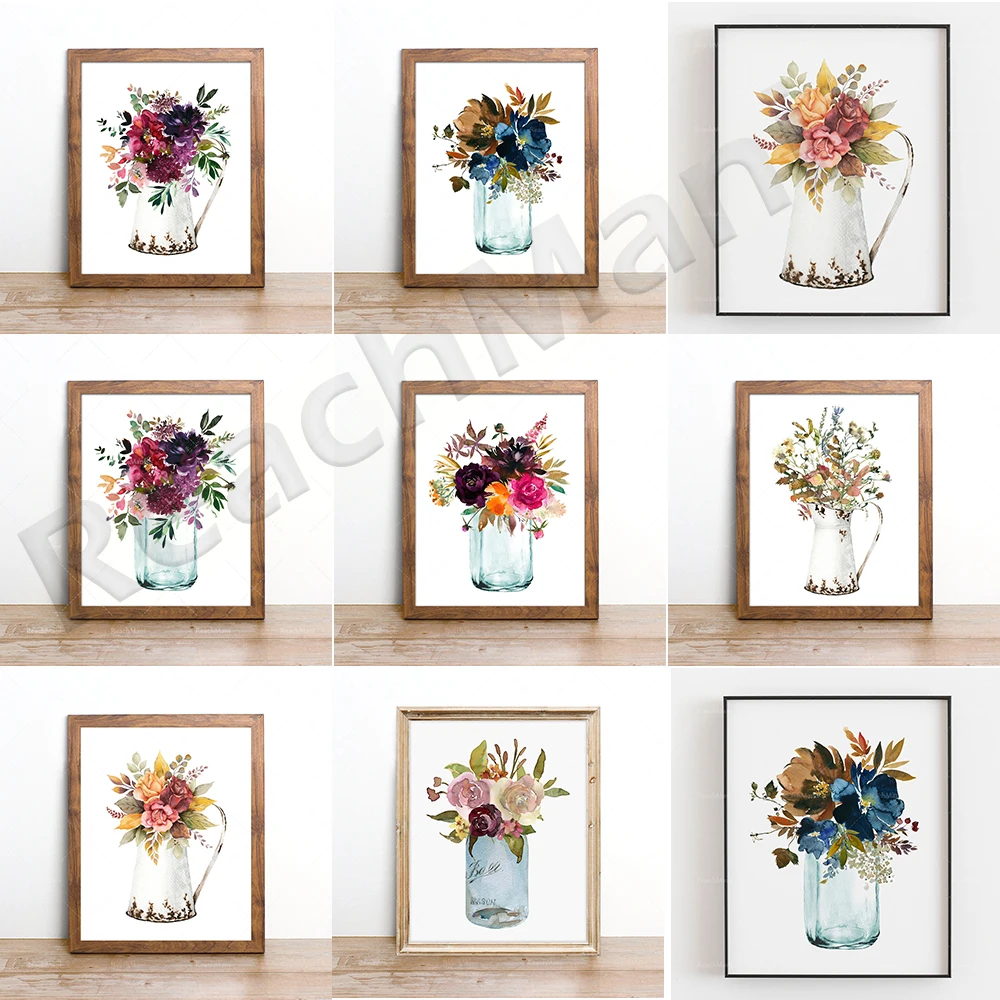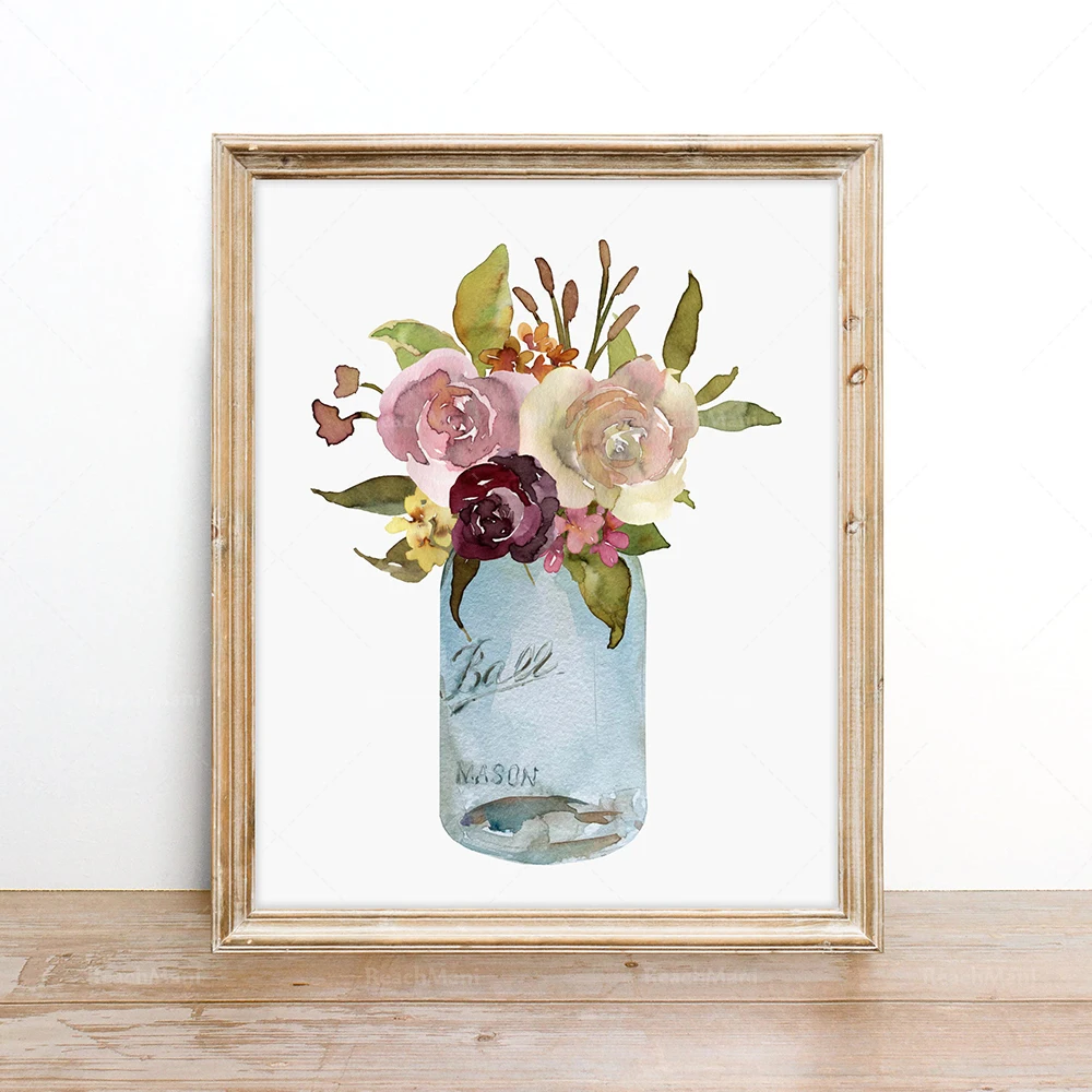 Каменная банка, Осенний букет, украшение для банка Мейсона, Акварельные Цветы, осенняя банка Мейсона, фермерский Настенный декор, настенный плакат