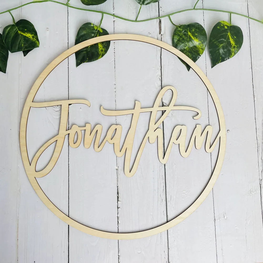 Пользовательский круг имя знак деревянный арцилик имя венок Свадебная вечеринка номер персонализированный подарок на день рождения украшение