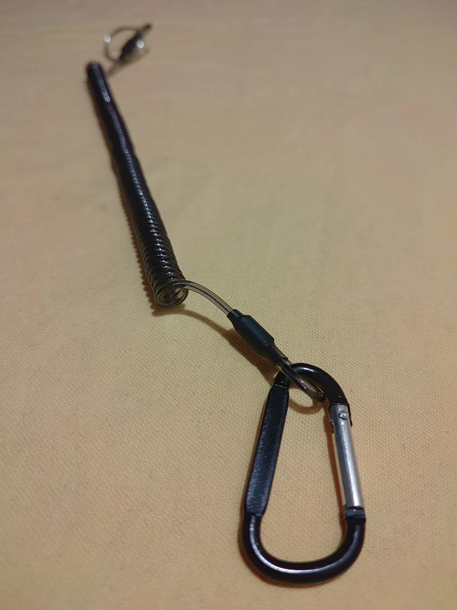 На вид все качественно. Внутри провода тонкий стальной прутик, карабин также из какого-то металла.
