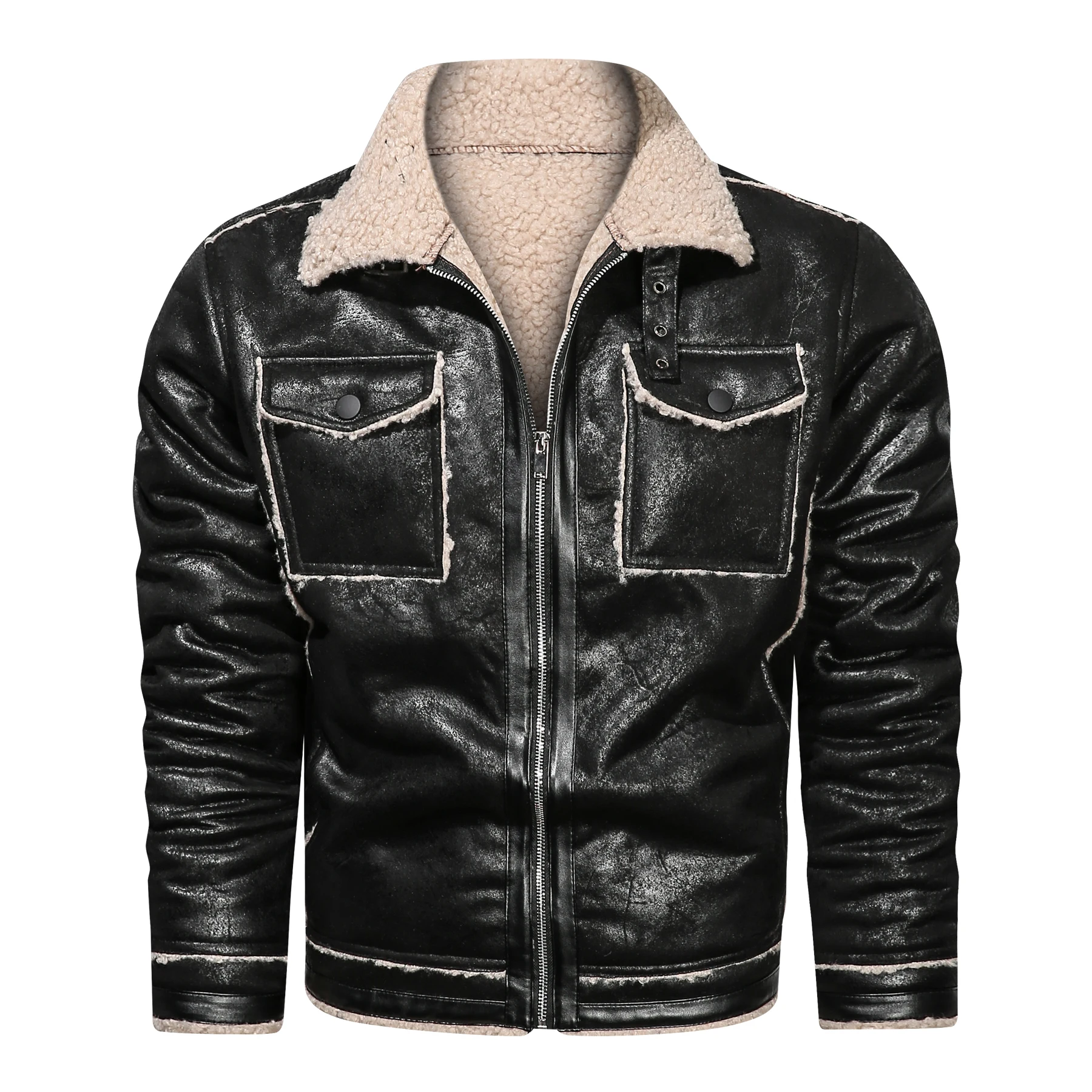 Мужская куртка из искусственной кожи, с толстой меховой подкладкой,...