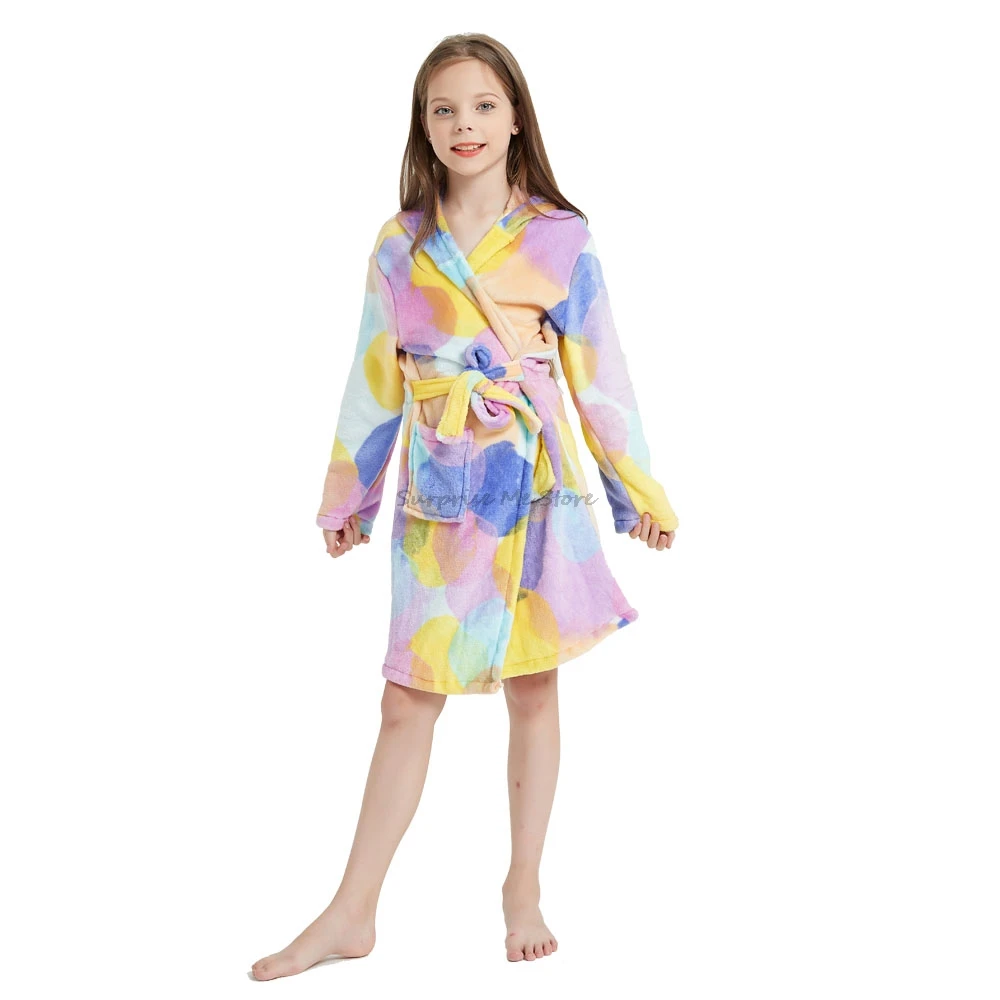 Банный халат для маленьких девочек, детские милые халаты для девочек, зимний фланелевый Халат, теплый Халат с капюшоном, банное полотенце в виде единорога
