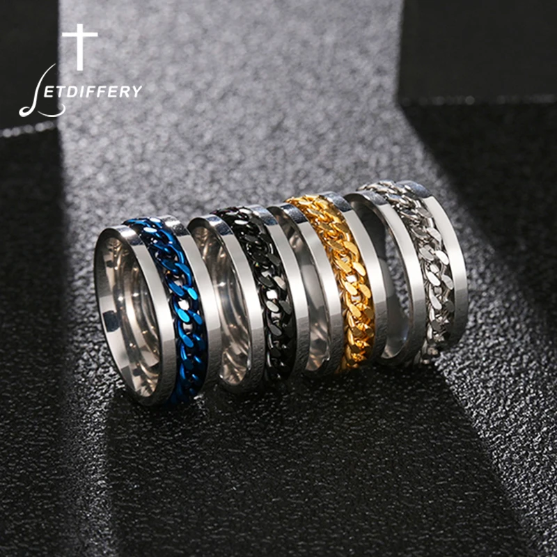 Панк 8 мм прядильная цепь для мужчин вращающееся кольцо черный синий нержавеющая сталь вращающееся крутое ювелирное изделие вечерние подарки Anel Alliance