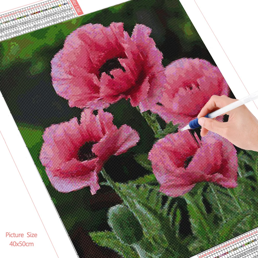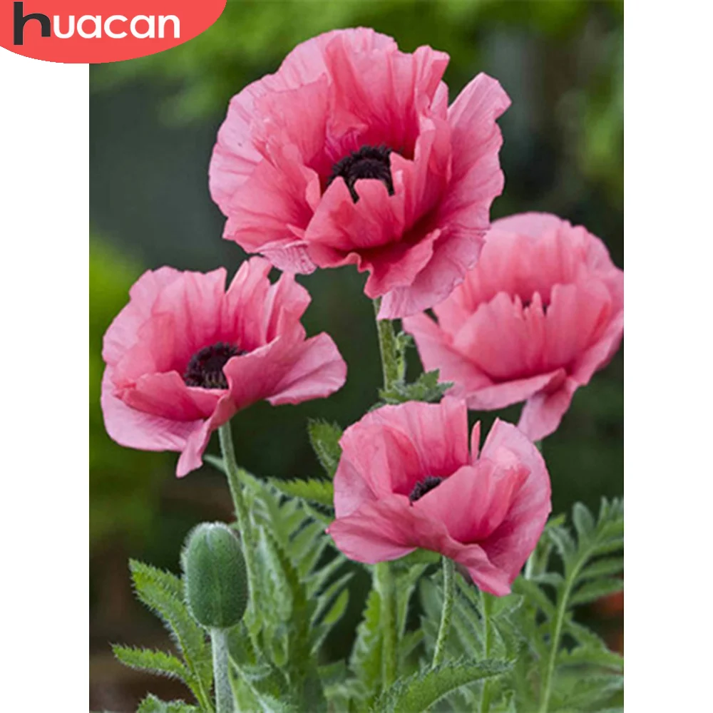 Алмазная живопись HUACAN, мозаика с цветком мака, полноразмернаякруглая вышивка крестиком, цветочный Декор для дома