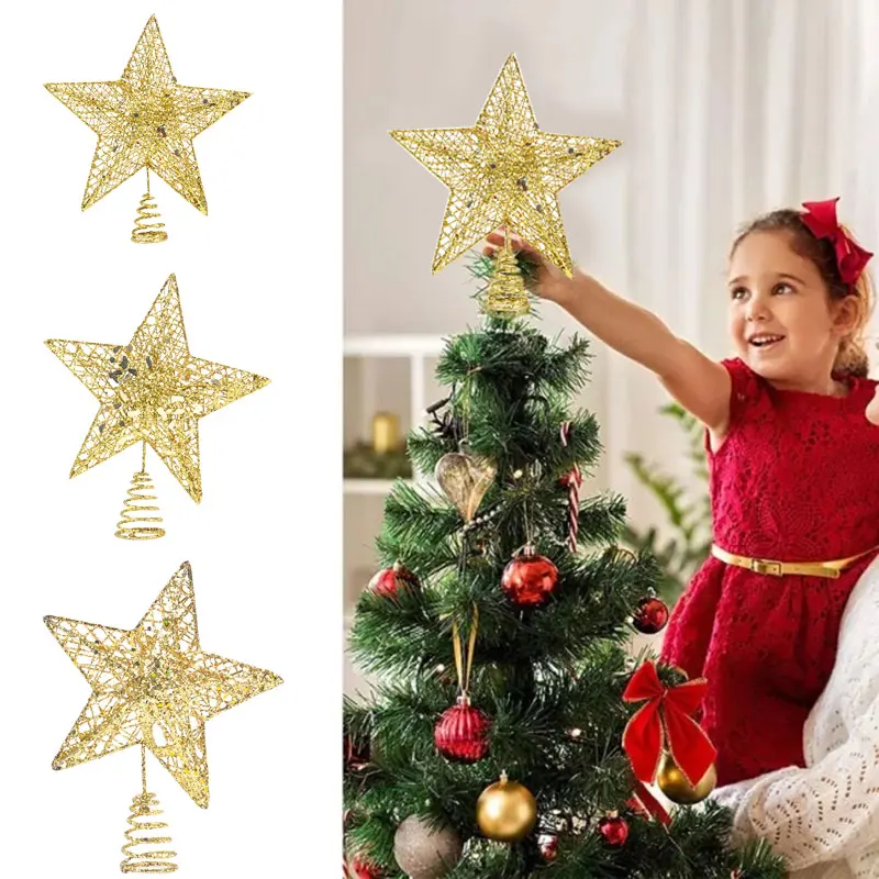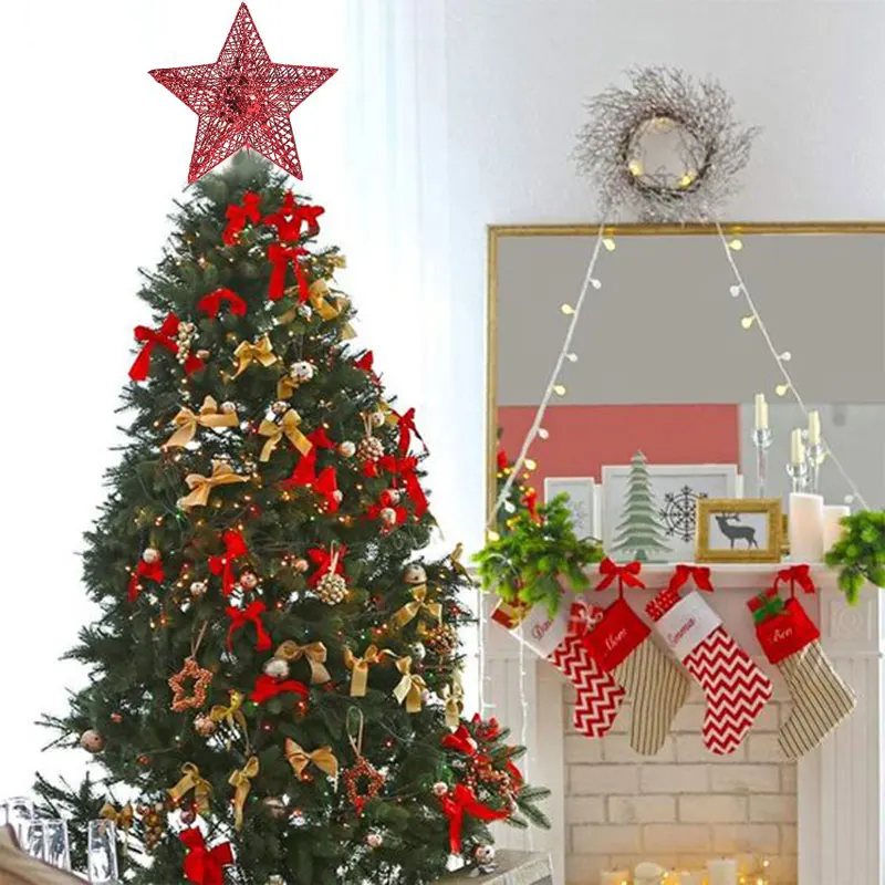 1 шт. Золотой Серебряный Красный Блестящий Топпер для рождественской елки звезда Топпер для рождественской елки украшения для дома Новогодний Декор 2022 Рождество