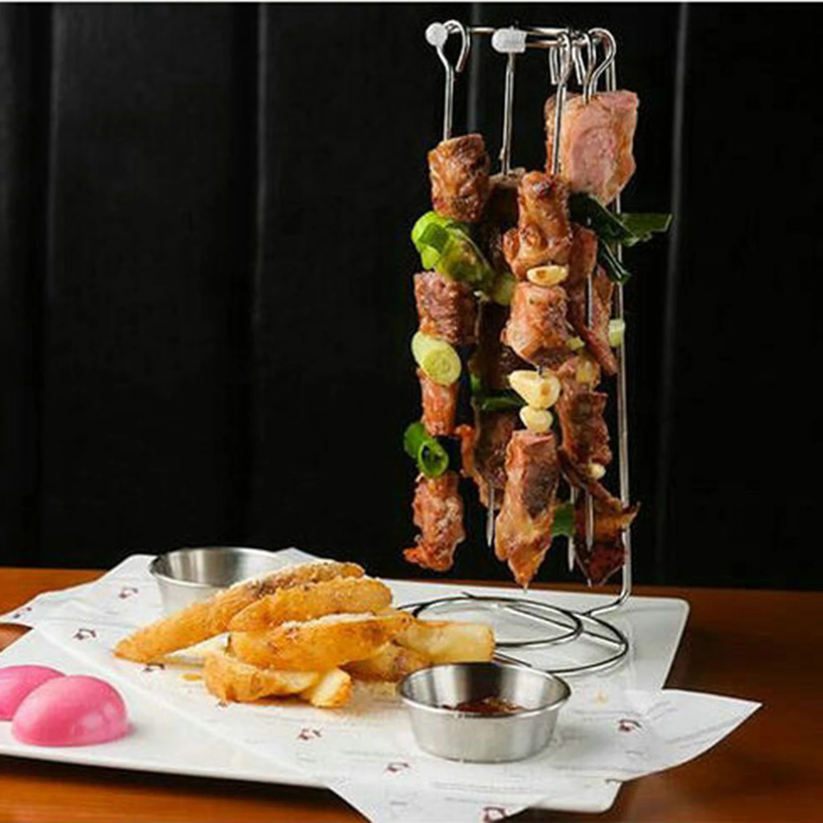 Вертикальный шампур позволяет отличным презентациям еды на ваших встречах с барбекю или пикников.
