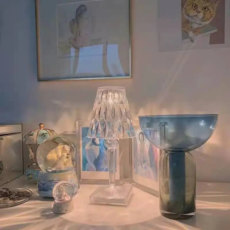 Алмазная акриловая лампа Kartell, Скандинавская Настольная лампа с USB-зарядкой, Романтический светодиодный декоративный светильник-распылитель, портативное светодиодное освещение