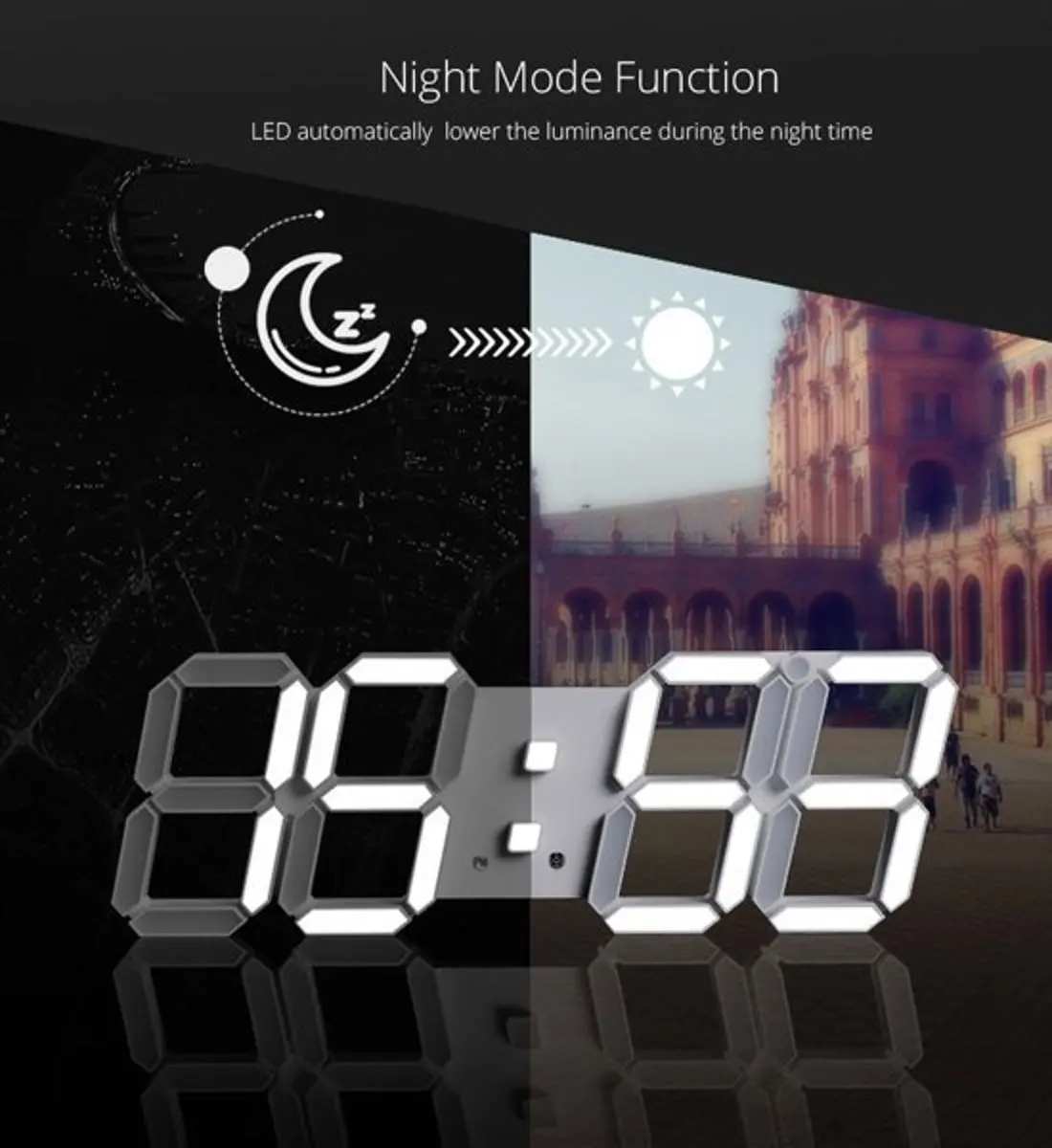 3D большие светодиодсветодиодный цифровые настенные часы, дата, ноч...