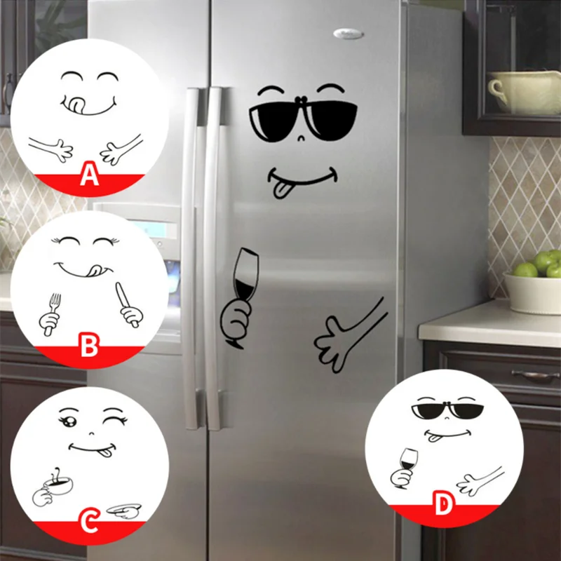 Наклейки на холодильник с забавным смайликом, креативные наклейки д...