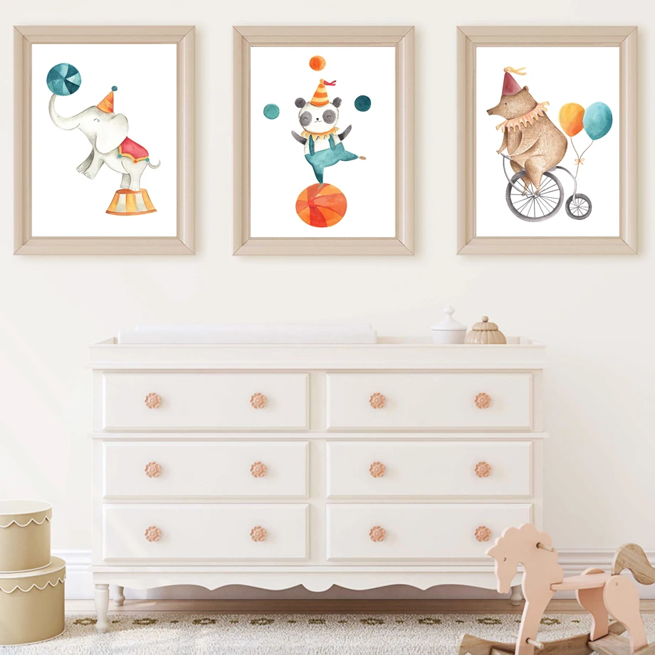 Картина на холсте, цирковые животные, Медведь, Кролик, панда, постеры для демонстрации, картина, настенное искусство в скандинавском стиле, для гостиной, Современный домашний декор