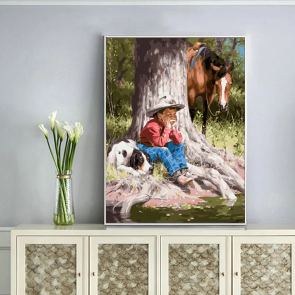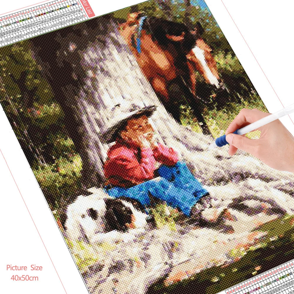 Алмазная живопись HUACAN 5d для творчества, домашний декор мальчика, лошади, полноразмернаякруглая Алмазная вышивка, наклейки на стену с животными